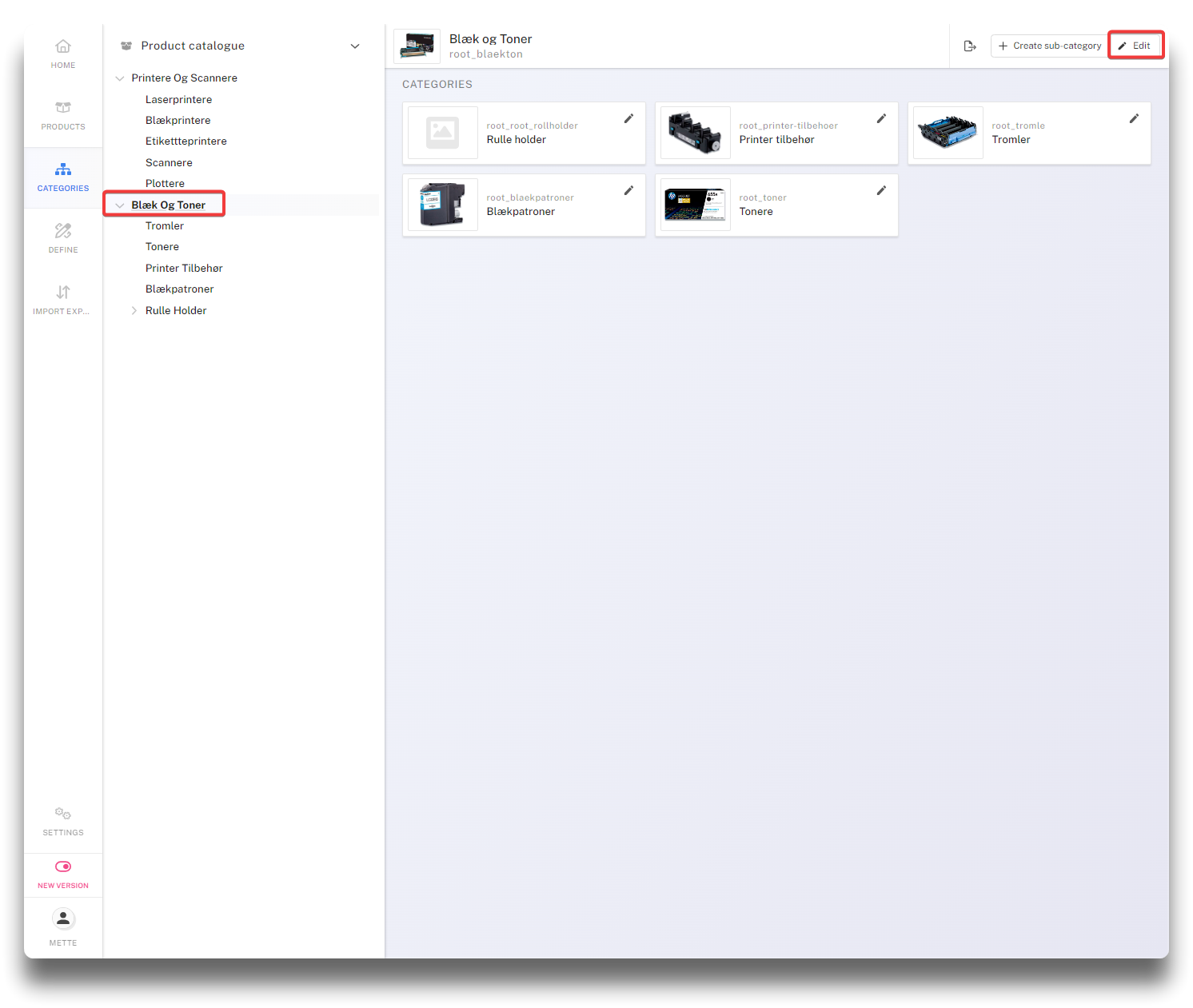Category details To navigate to the Category detail page, click the relevant category and click the "Edit" button. Navigate to Category detail page Category detail page Previous Create subcategory Next Hierachy