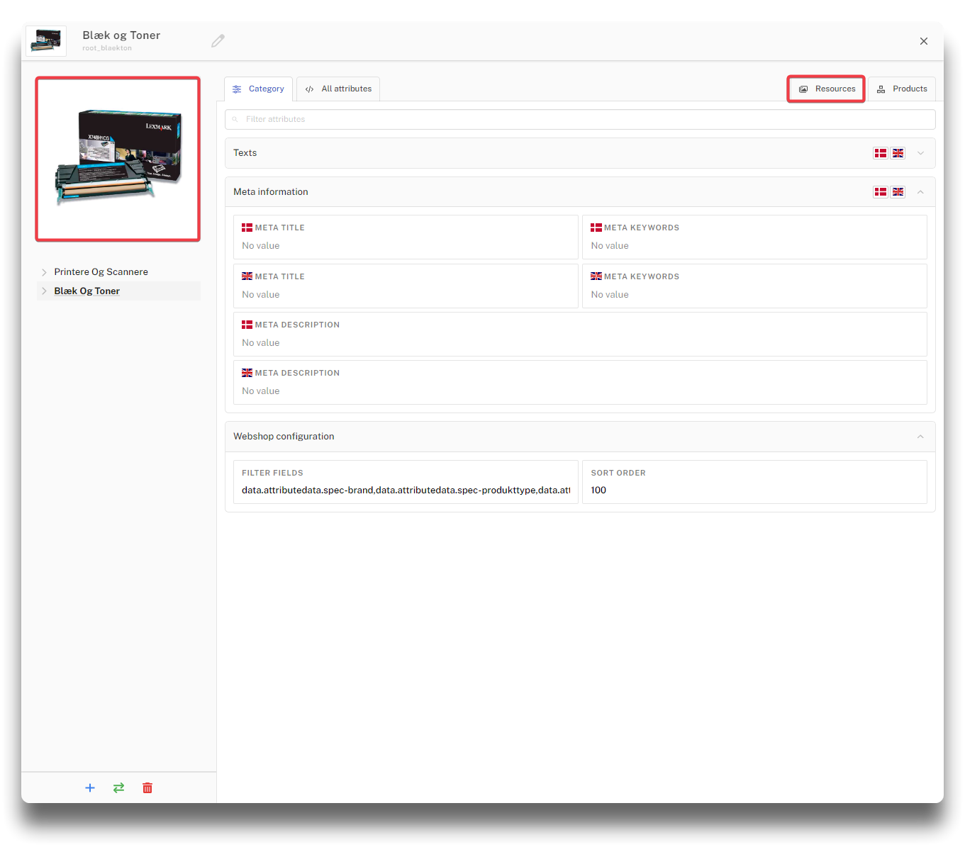 Resources tab