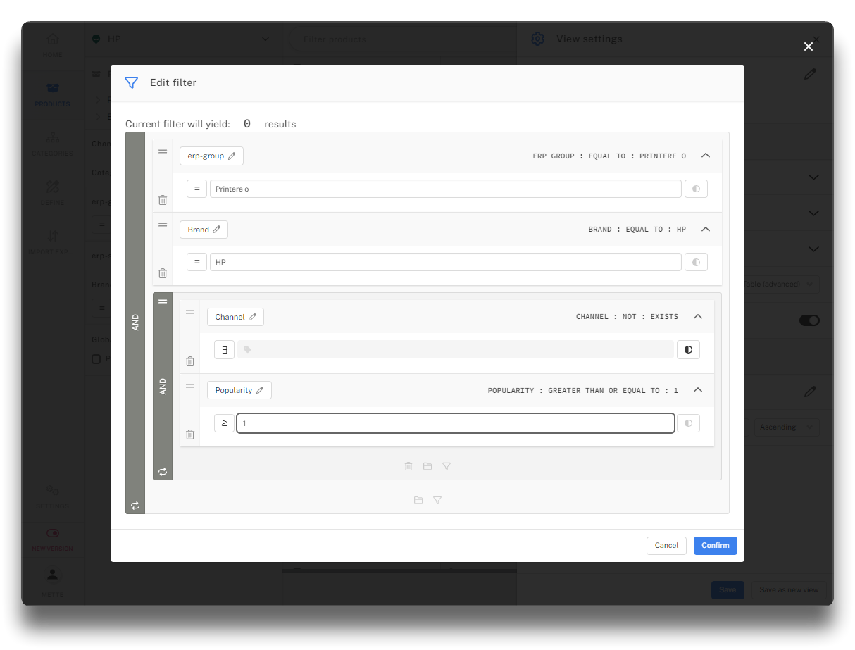 Click the edit icon to add query. The number of results updates after each change to query. This is very helpful when checking if done correctly.