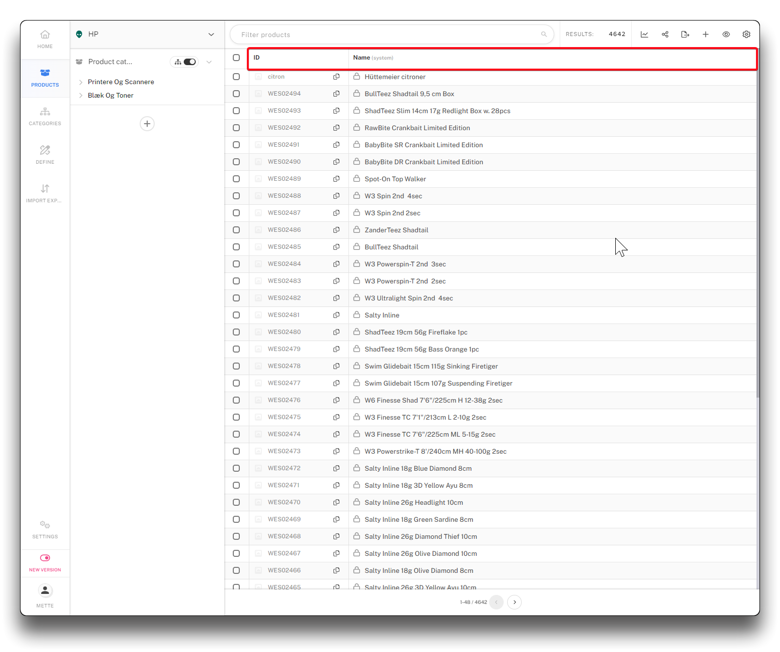 - Name - product name from the ERP-system