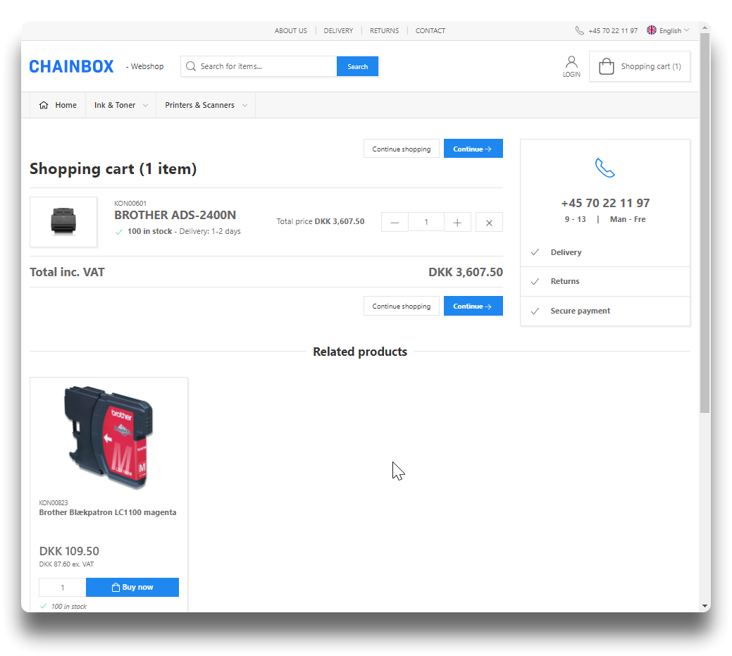 Options to show related products in webshop. Type in product ID and choose from the list appearing during search.