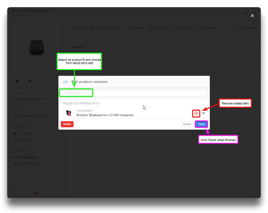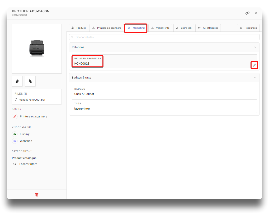 Enter tags to relate product to content on webshop