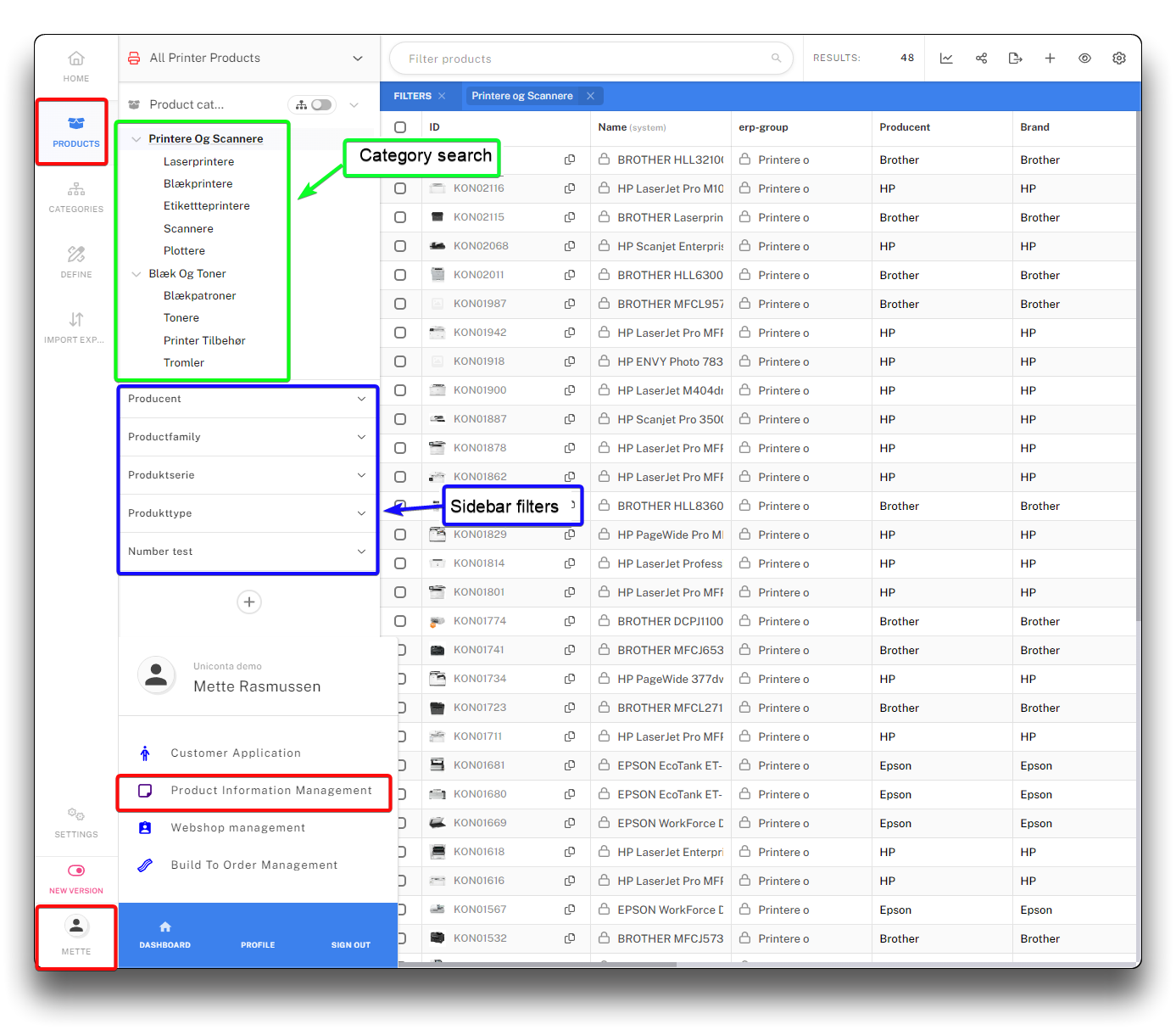 Product search by categories or sidebar filters