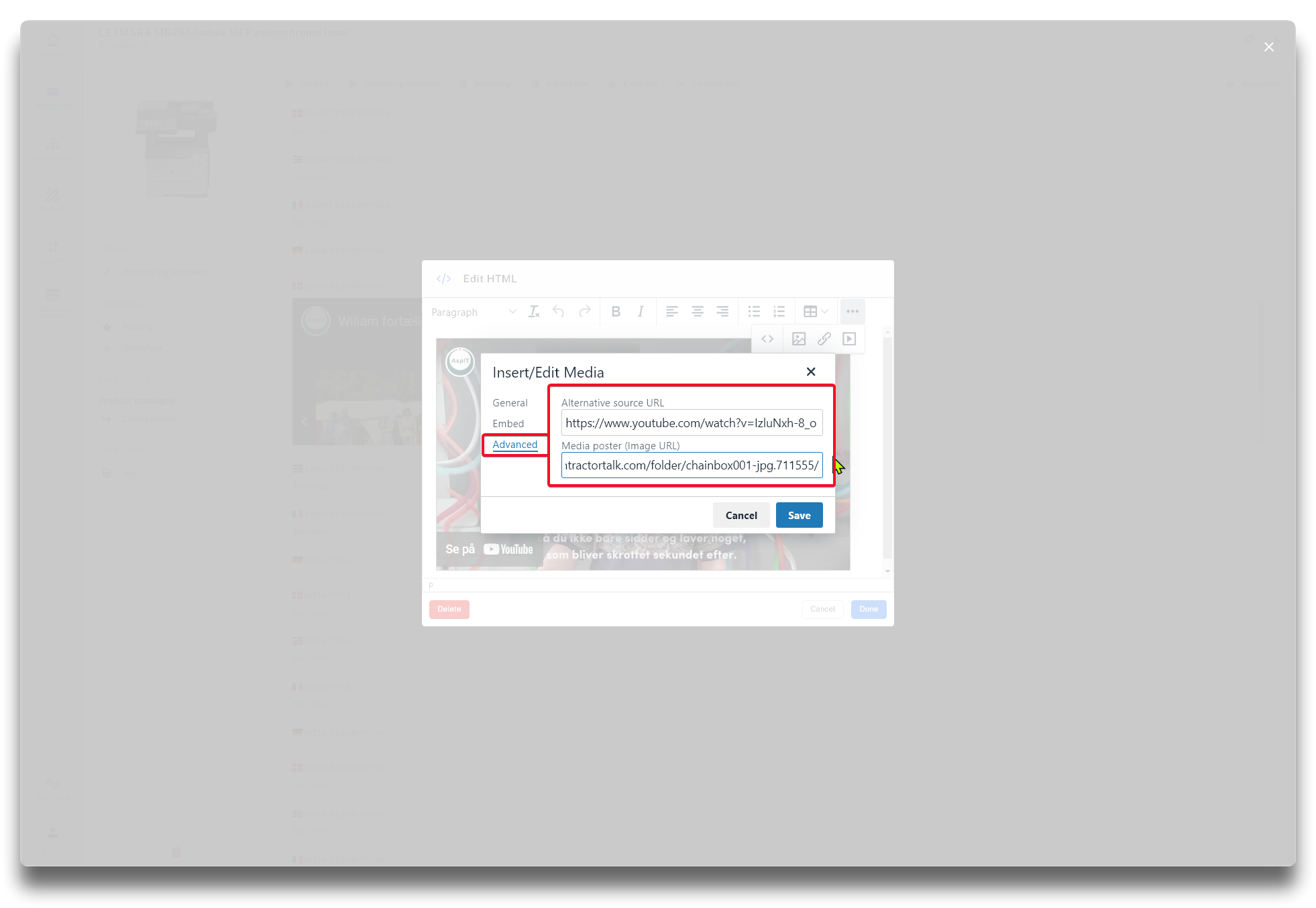 Adding video in Long description