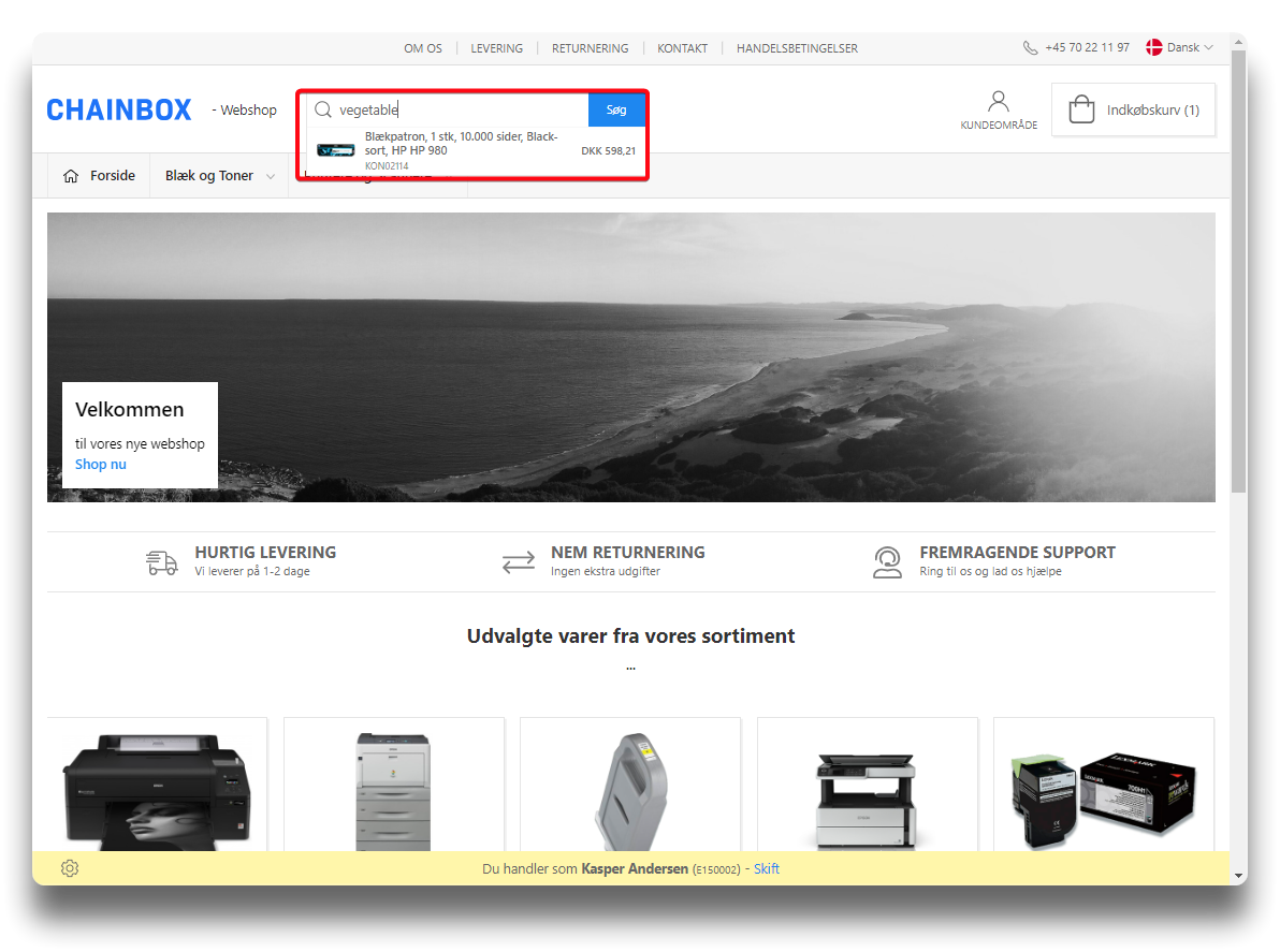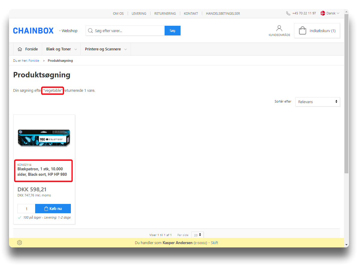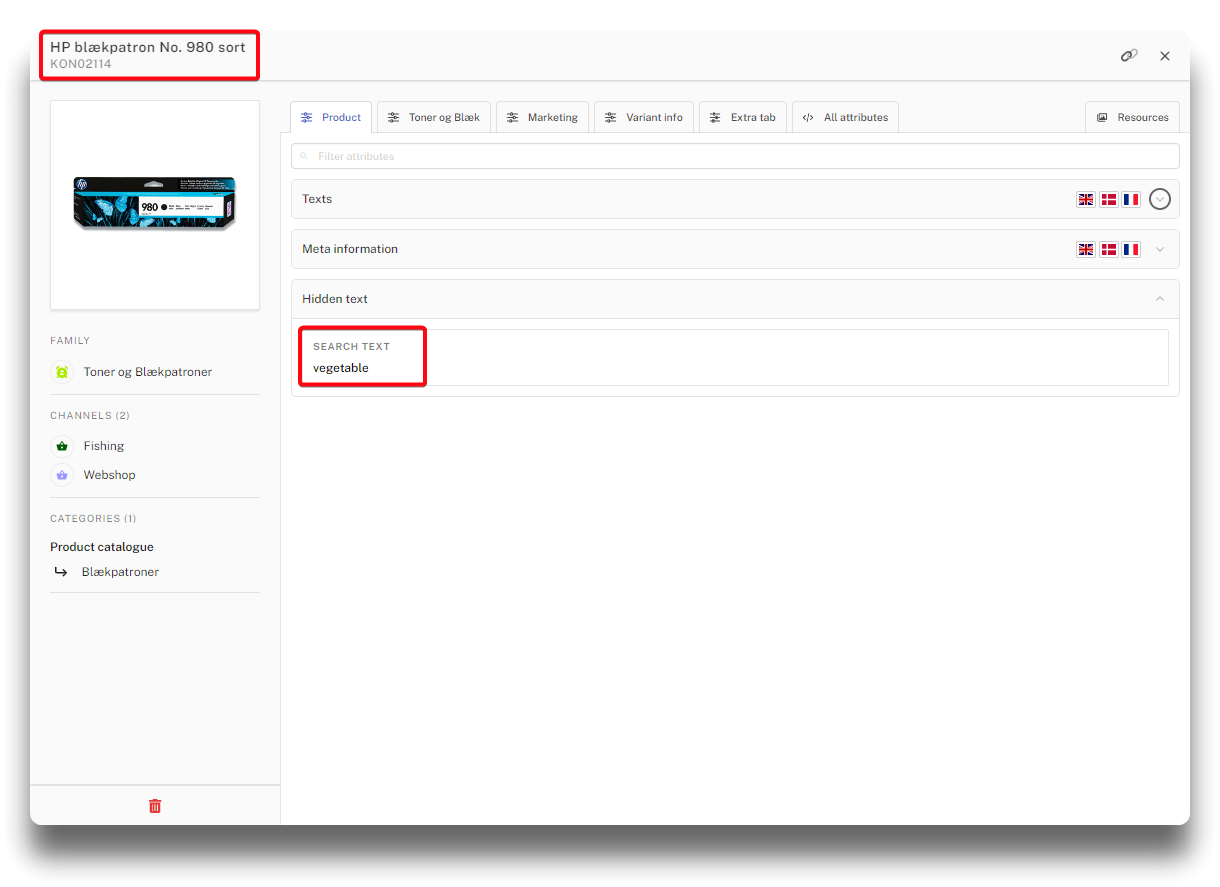 Option to enter a search text for the specific product. Affects searches done in the webshop without the text being visible in the shop.