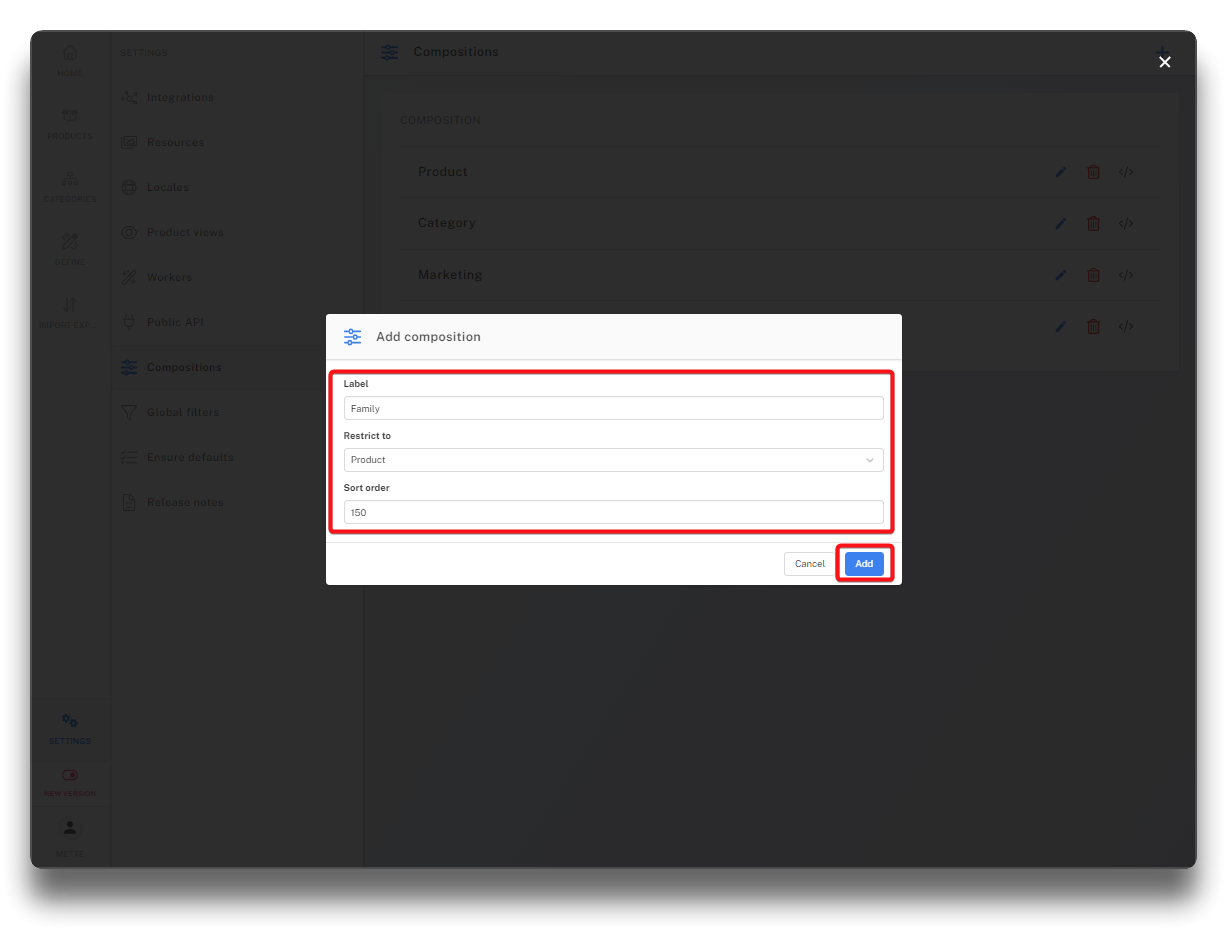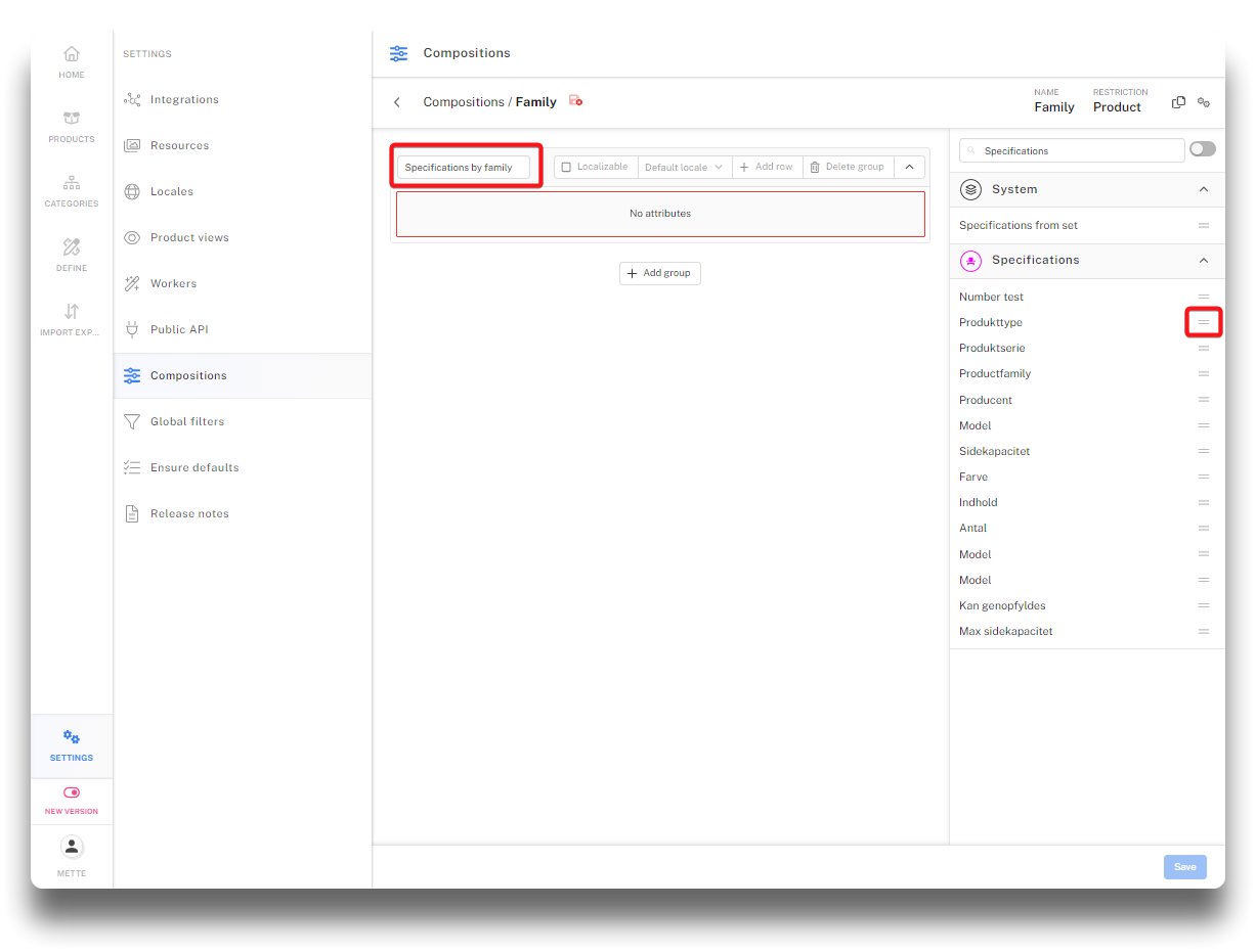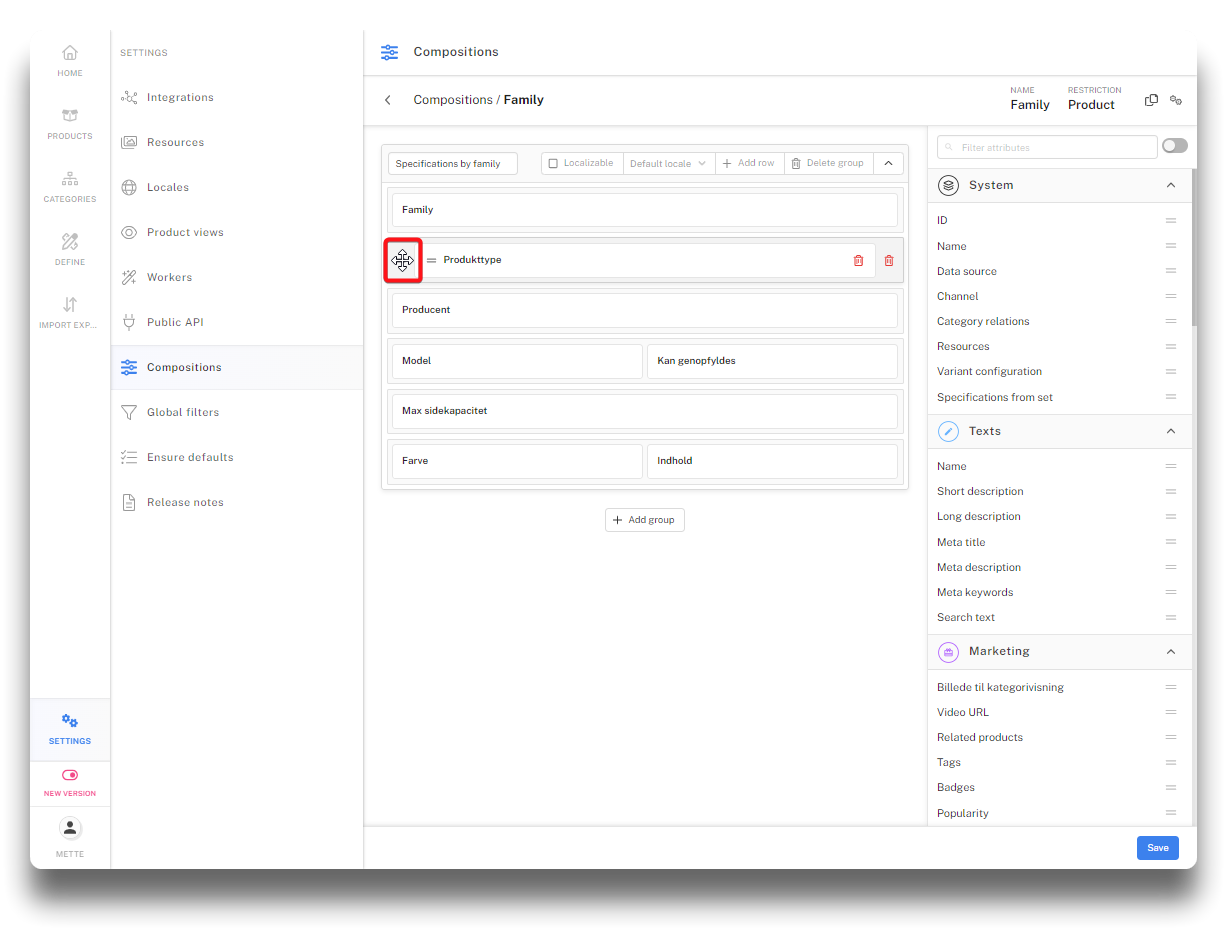 Compositions are the tabs on the product and category detail page, and the sets and attributes each tab consists of.