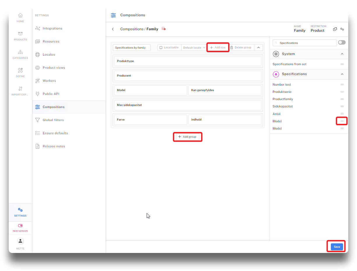 Continue to add rows with attributes and groups if needed, and click "Save" when done.
