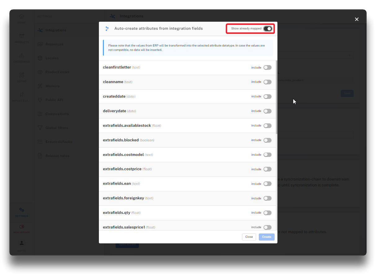 This function is used for initial setup of PIM, since it offers to map all ERP-fields to PIM in a swift manner.