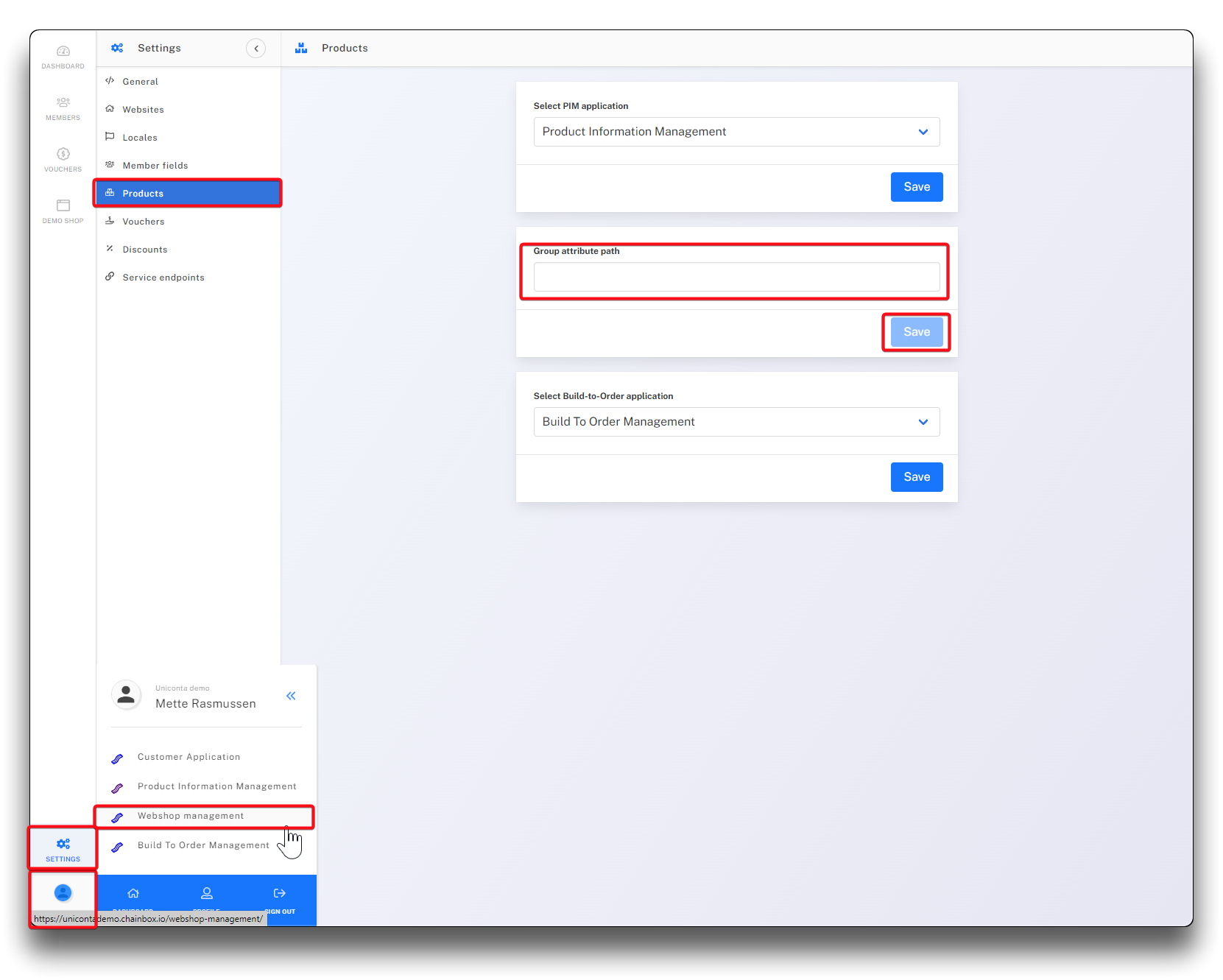 To define the concept of "group" in your webshop, - for now only usable in this scenario with vouchers - you must define in Settings -> Group attribute path "data.attributedata.group". The field will serve as the basis for categorizing products into voucher groups.