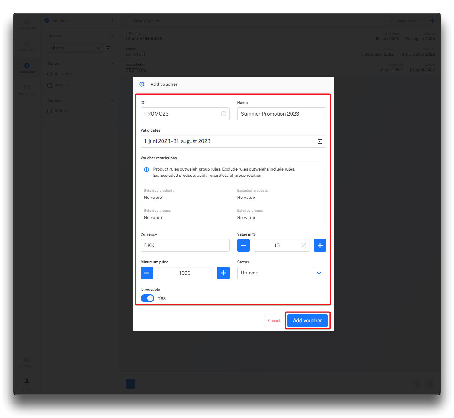 Note: In order to utilize vouchers on your webshop, it is necessary to enable the voucher function in Umbraco within your Checkout settings. You can refer to the guide provided in the link below for detailed instructions on how to enable this feature: