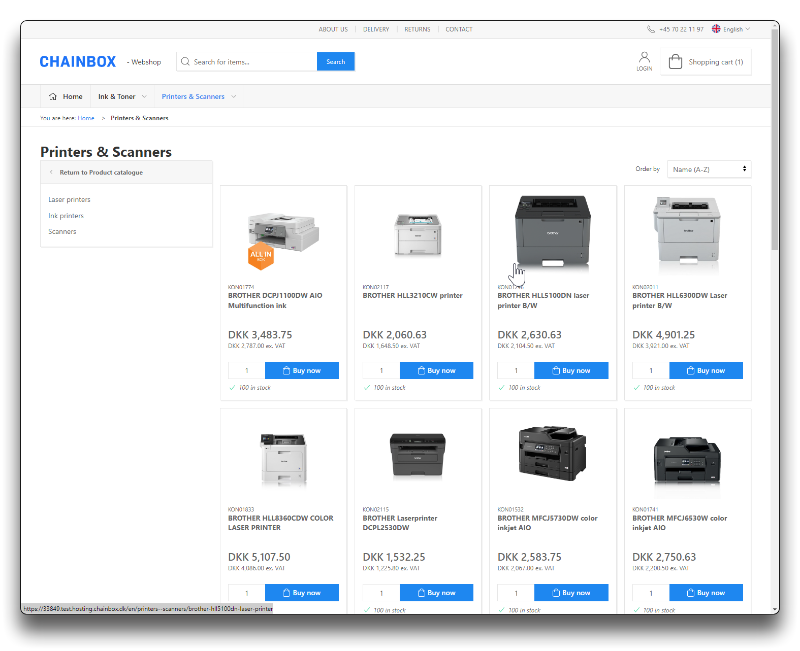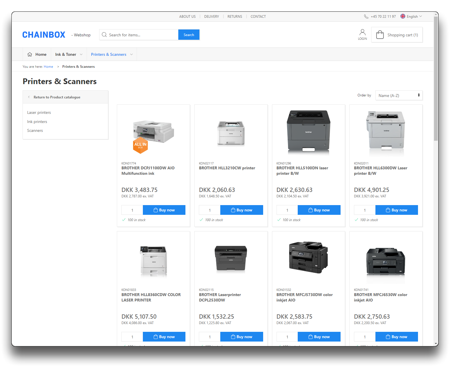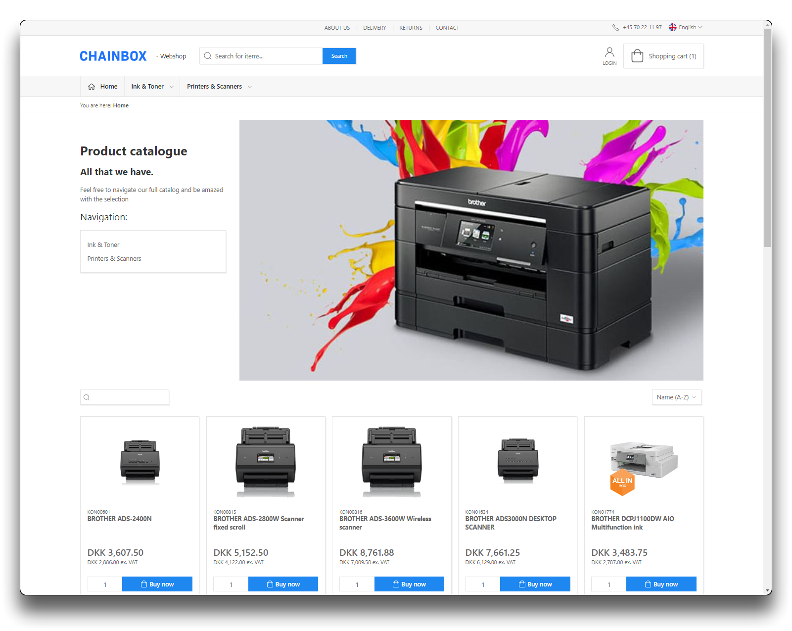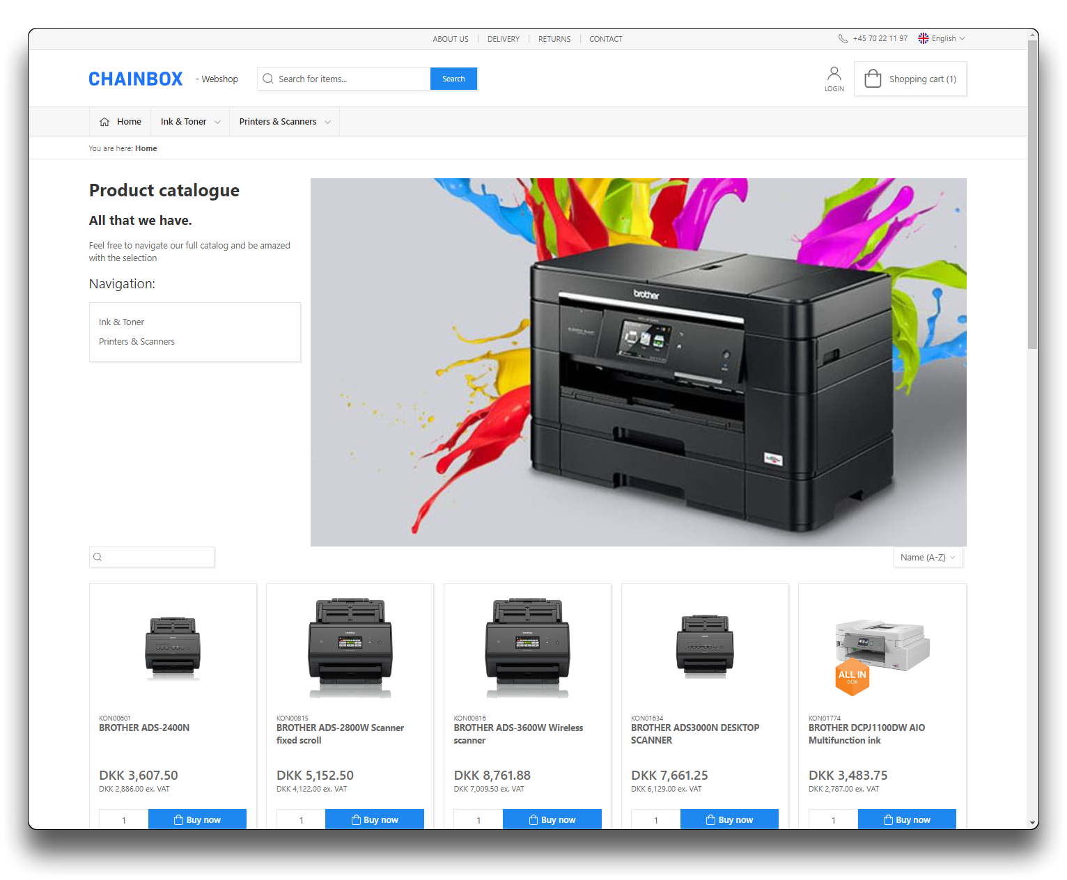 As shown in step 4, the template now contains a headline (name of the category) in the top, and a divided row with Category navigation to the left, and product-listing to the right.