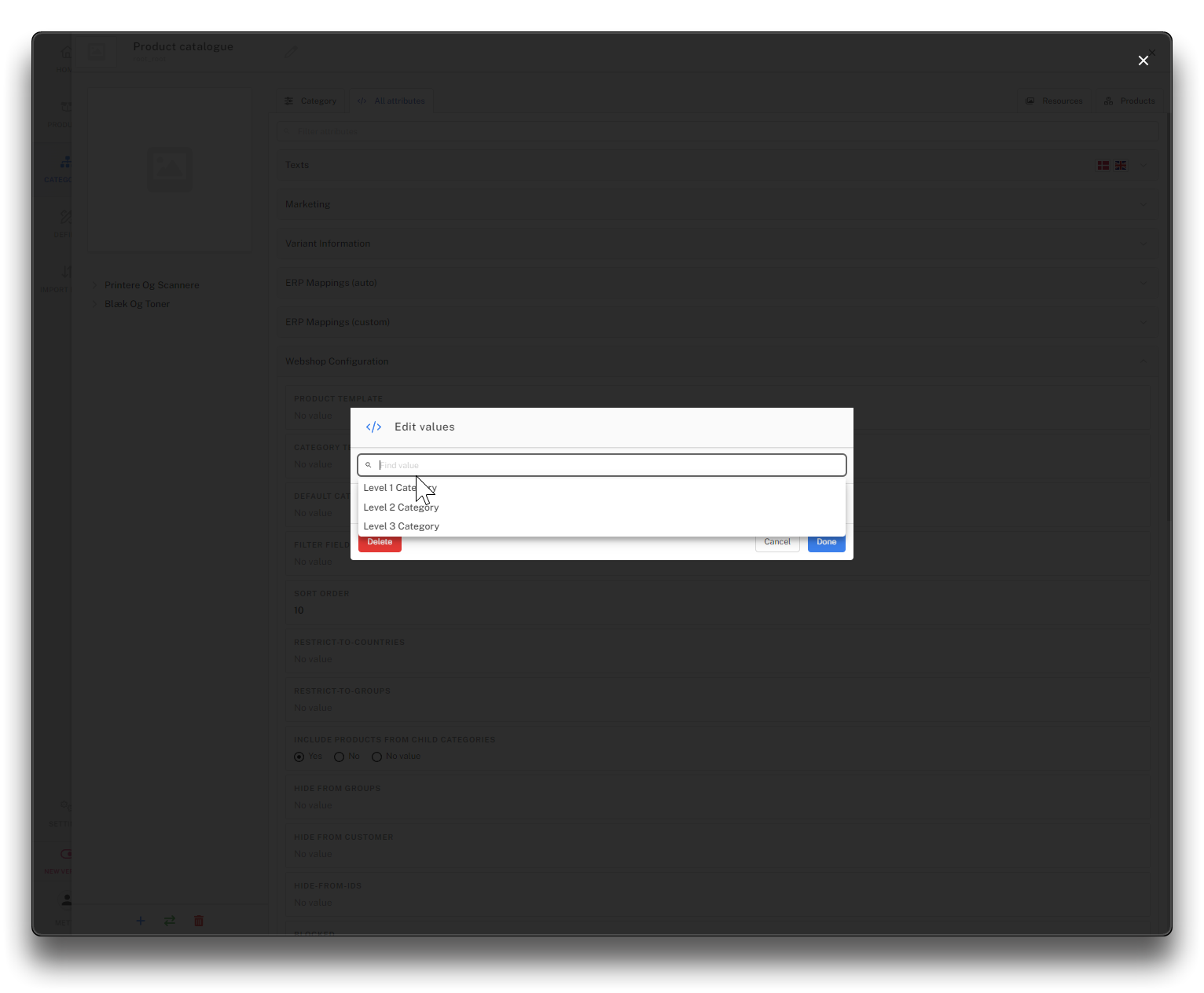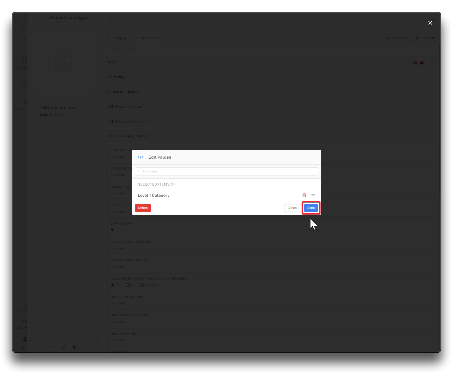 Choose "Webshop Configuration". This determins under what section you will find the field under PIM Categories