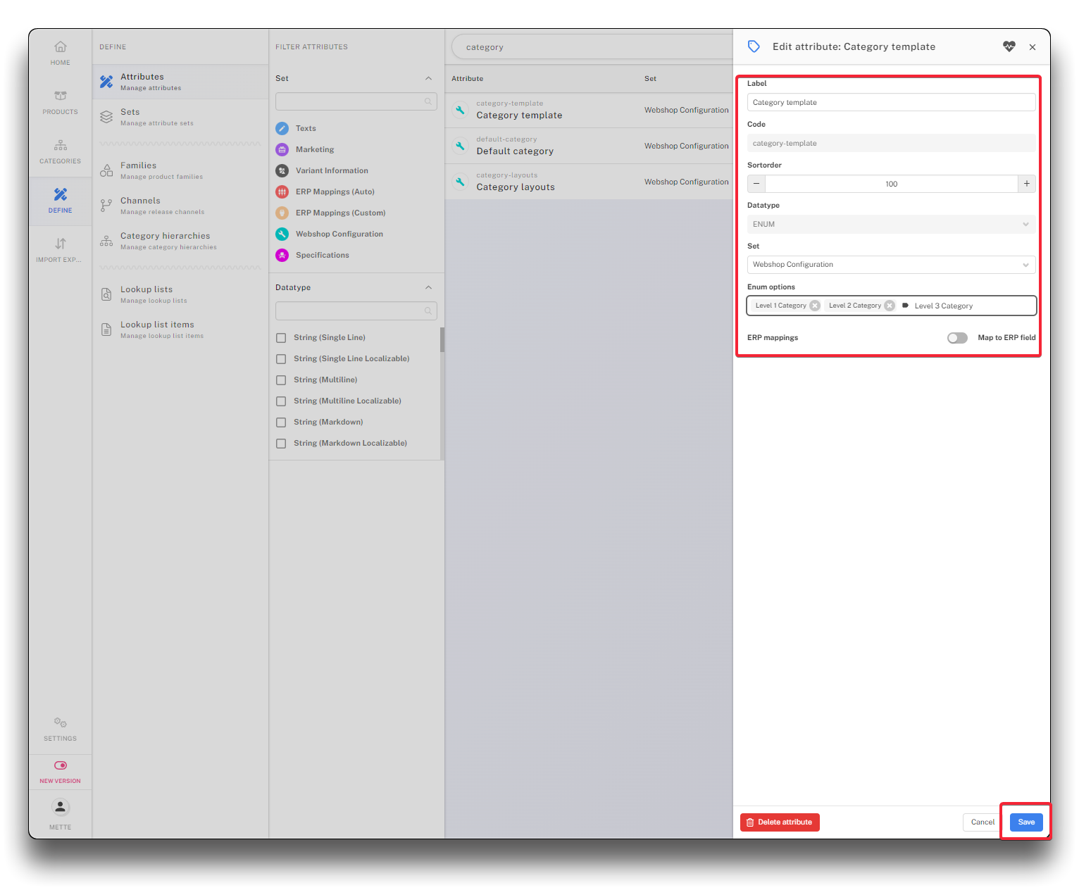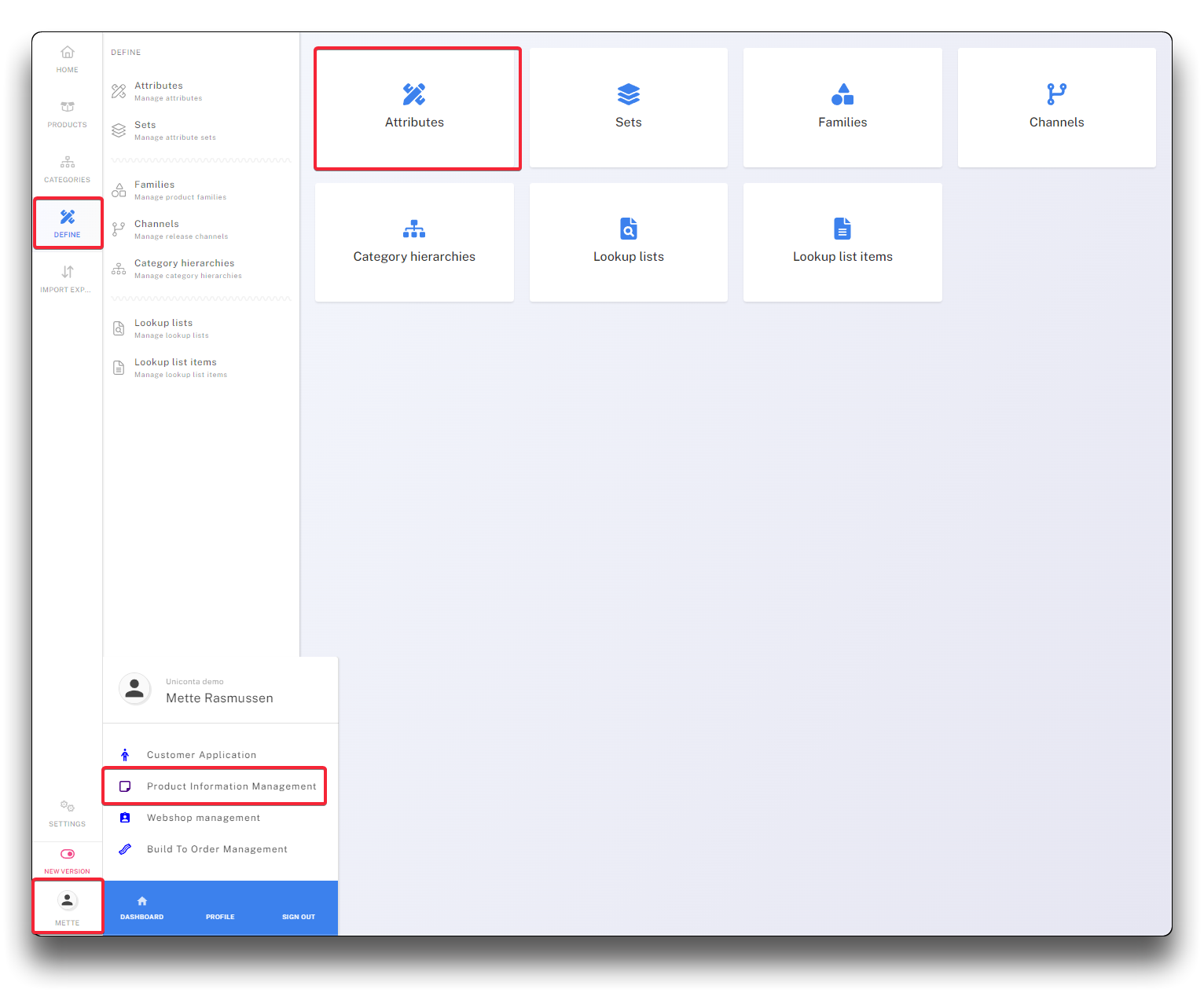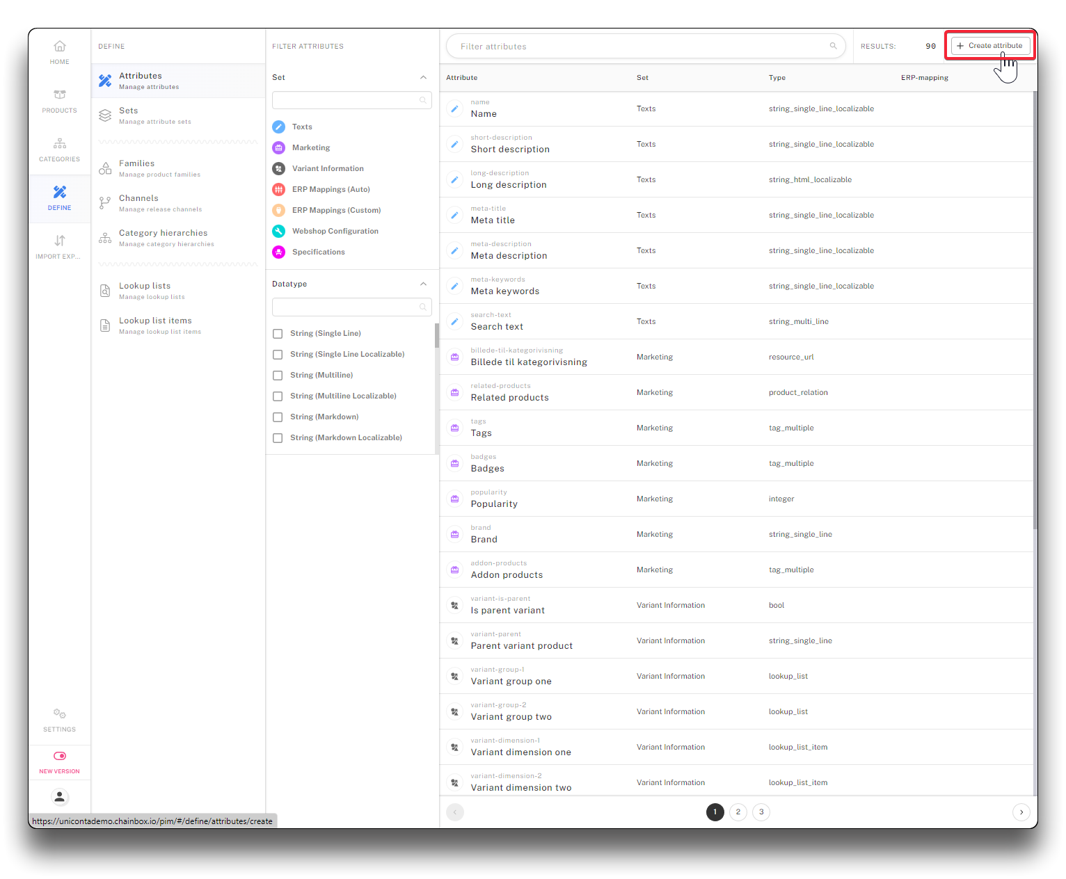 Go to your Product Information Management (PIM) system and choose "Define" - "Attributes" and click "Create attribute"