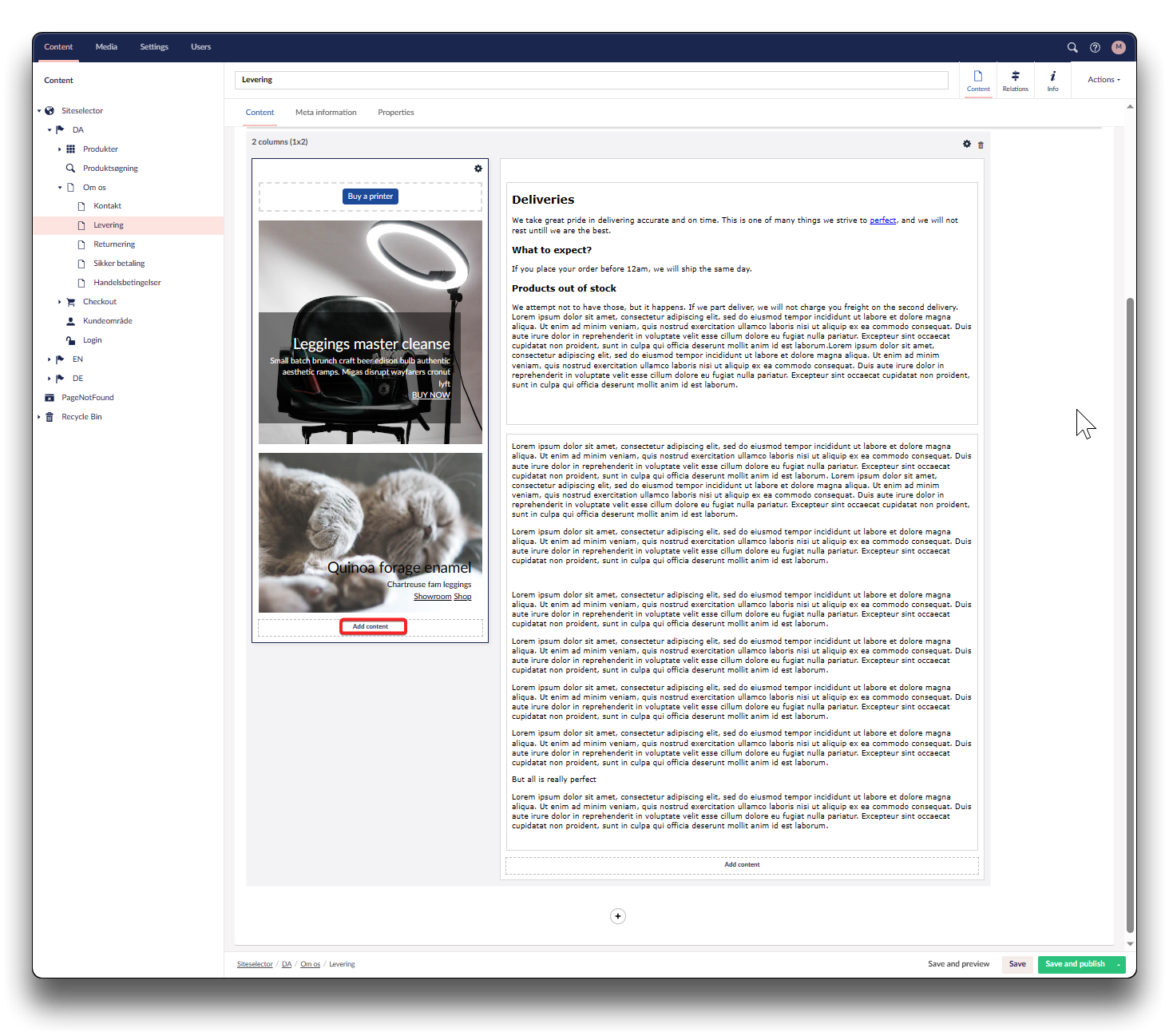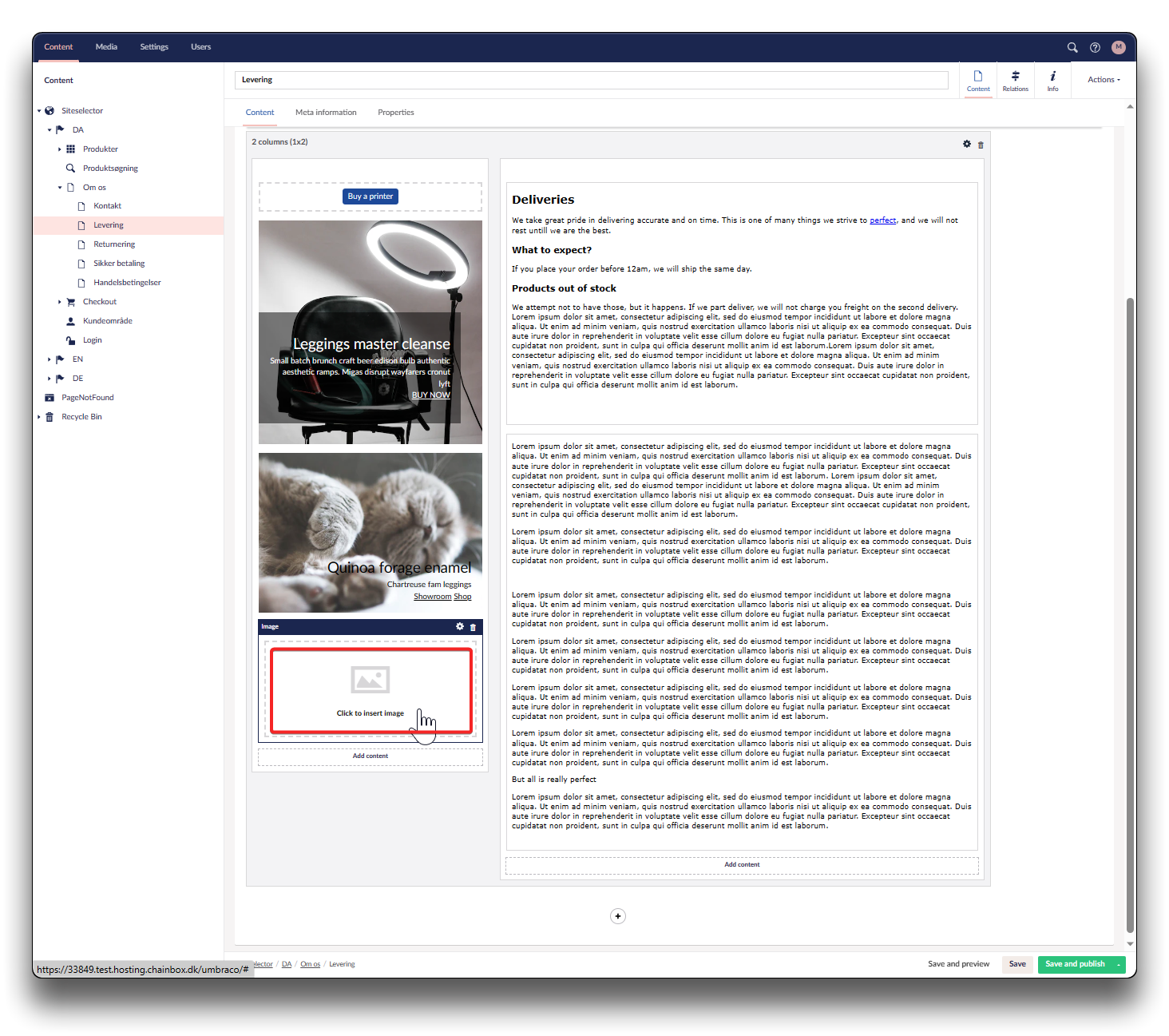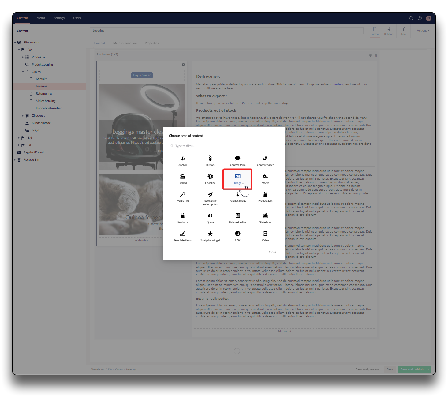 Click "Add content" in the column of your choice, and choose the "Image" icon, and "Click to Insert Image"
