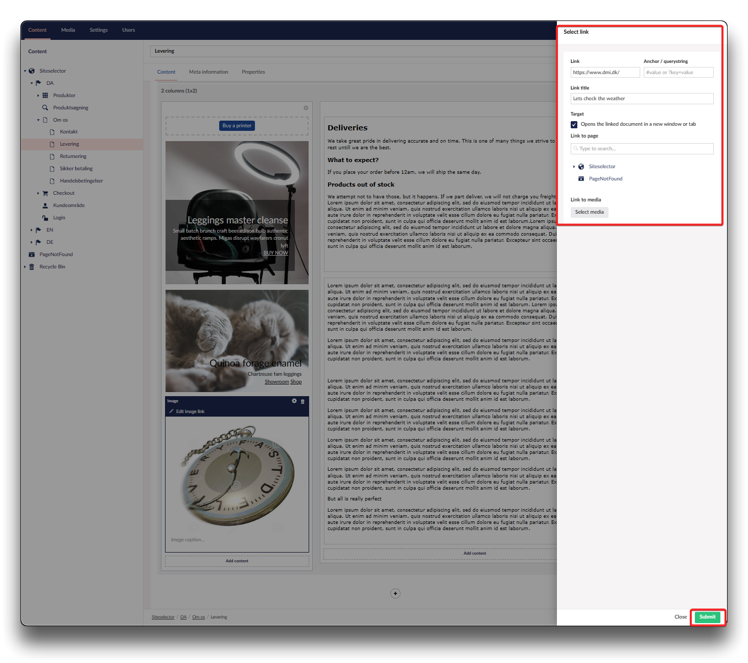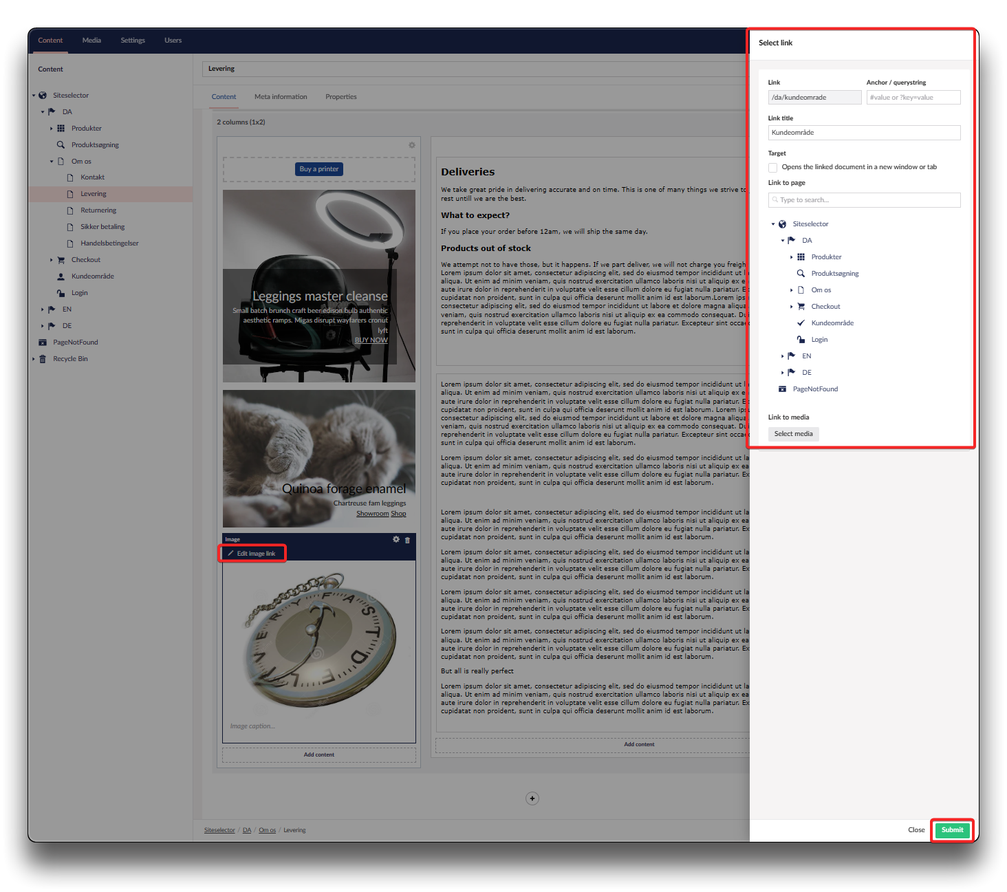 Will allow you to create links to URL's, a page, media or anchor/querystring.
