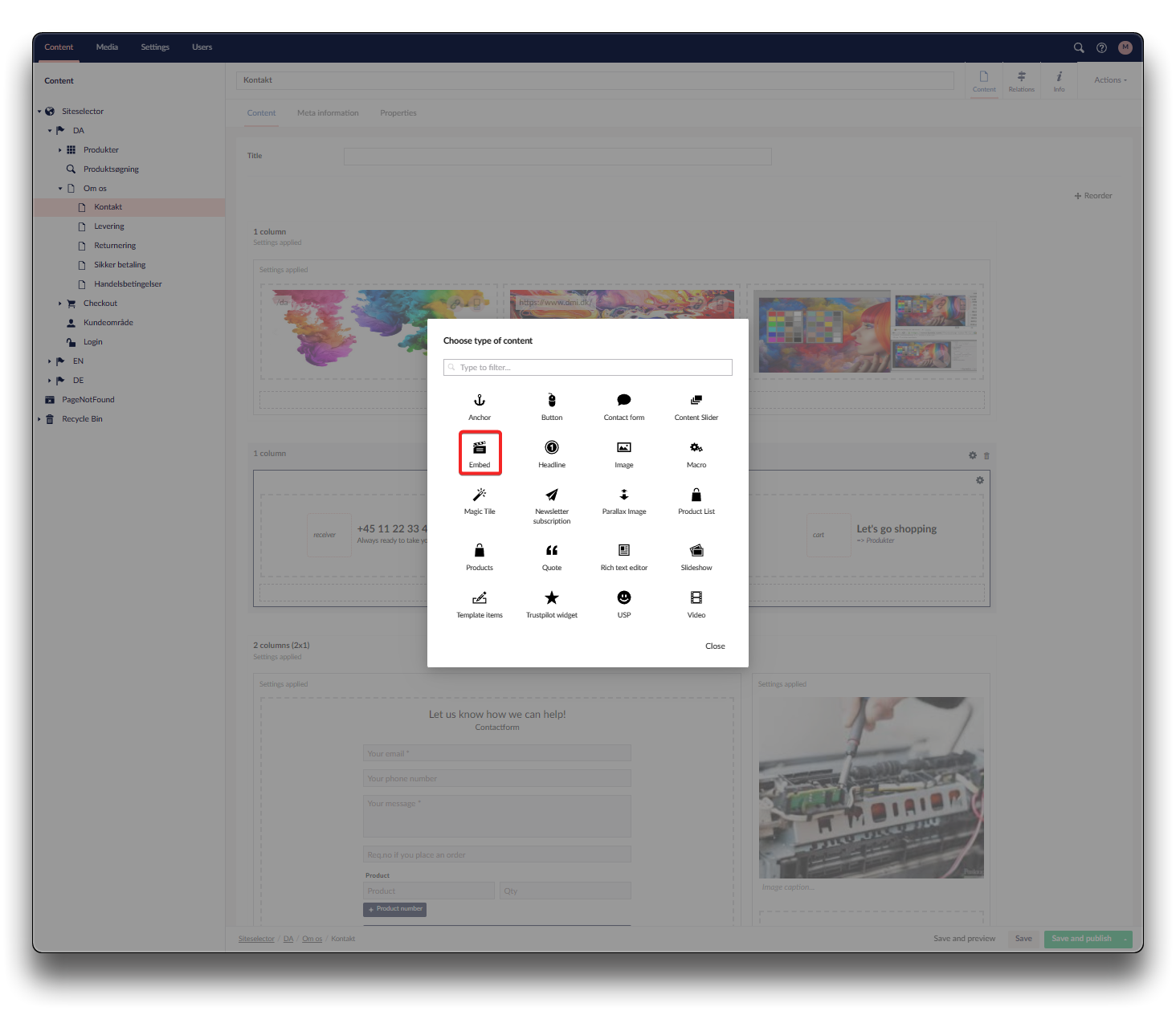 Click "Add" in your chosen column, Click the "Embed" icon.