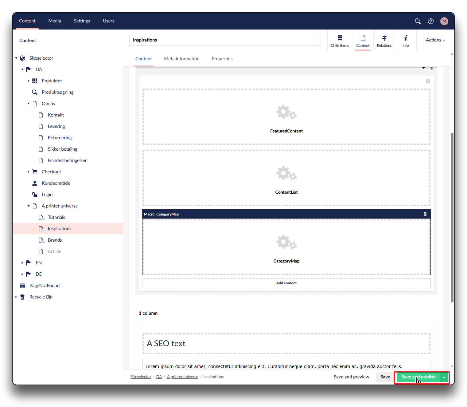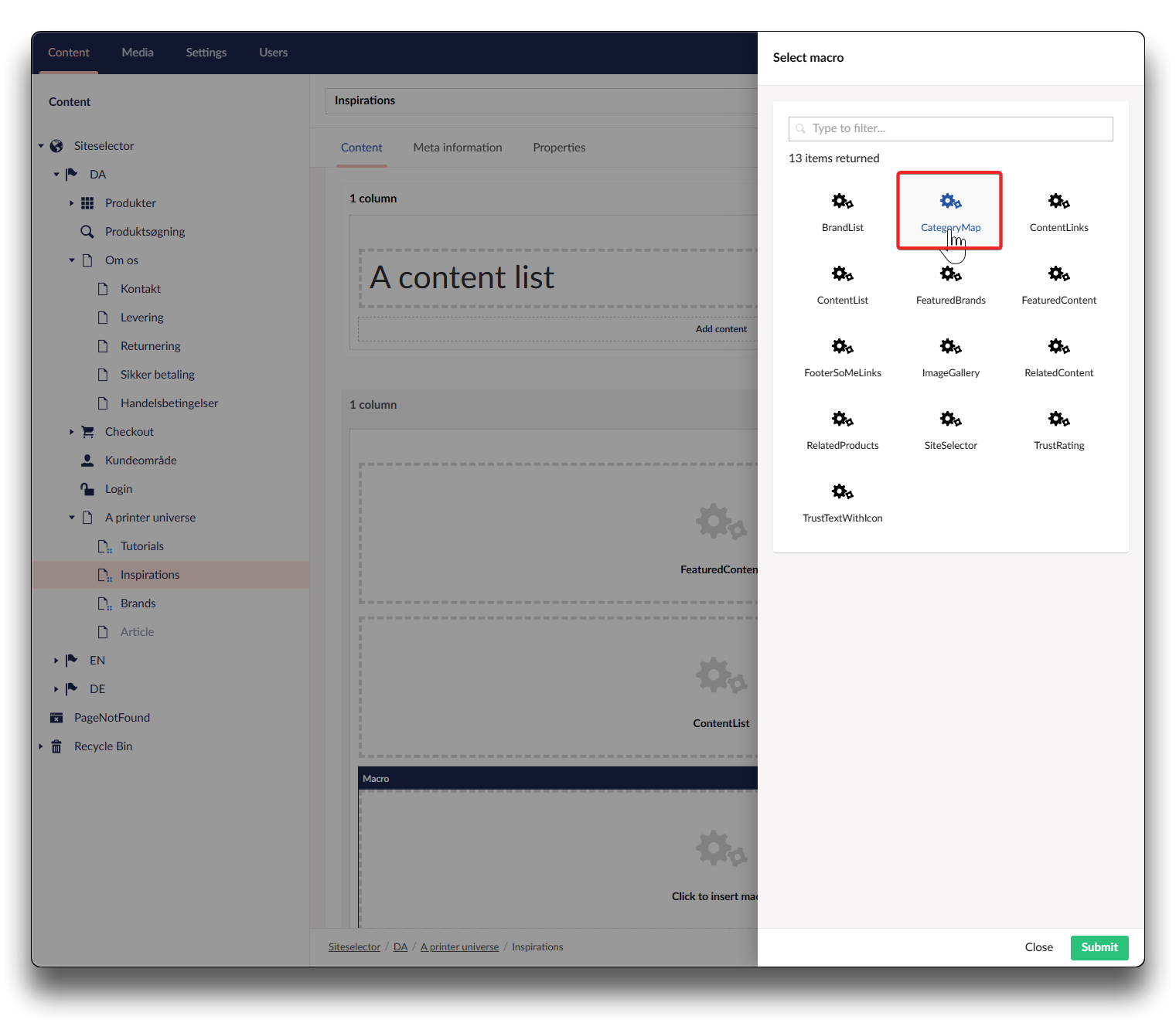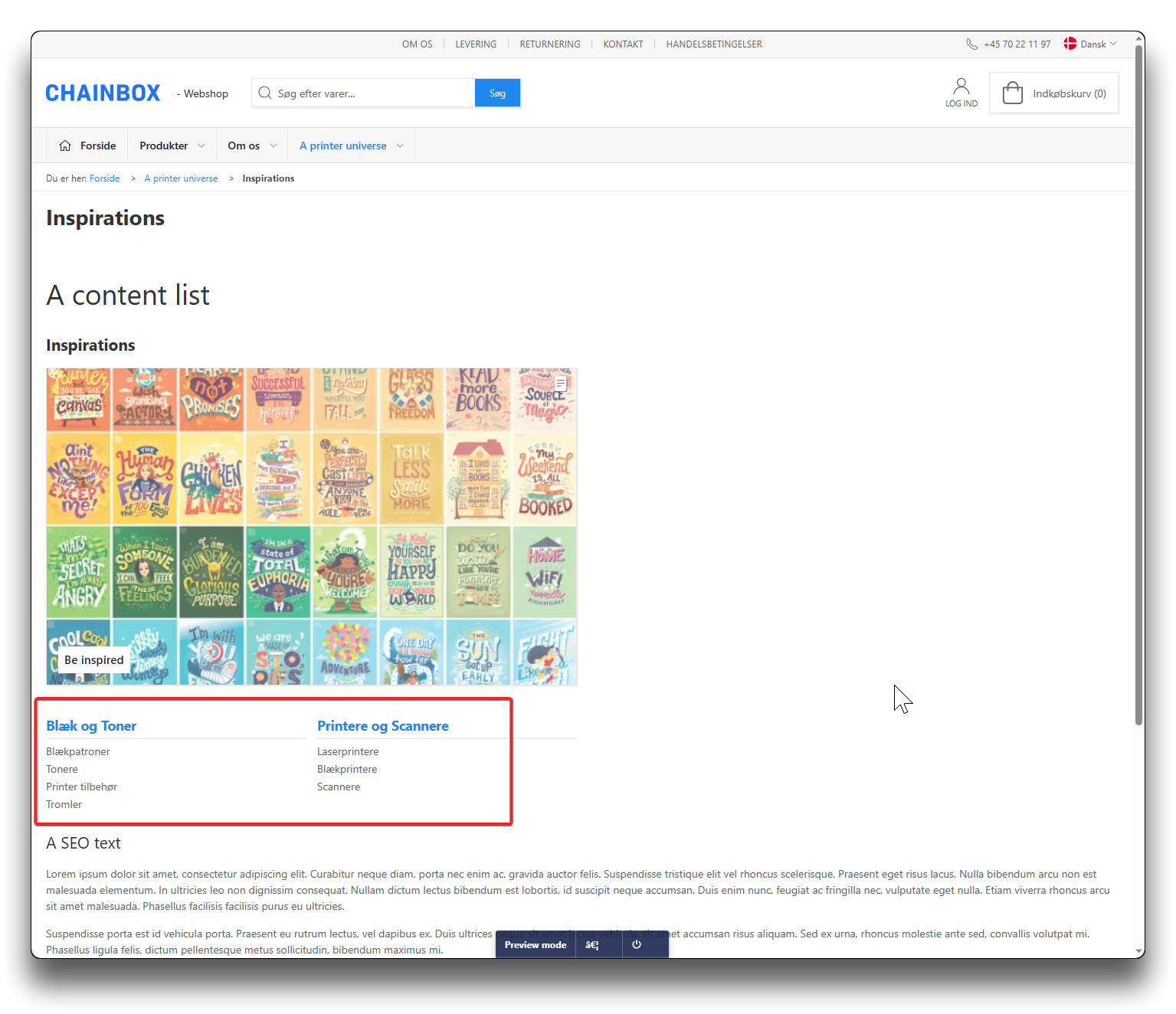 The CategoryMap automatically provides link to the shop category you click on. The CategoryMap feeds of the Category structure as defined in your Product Information Management (PIM) system