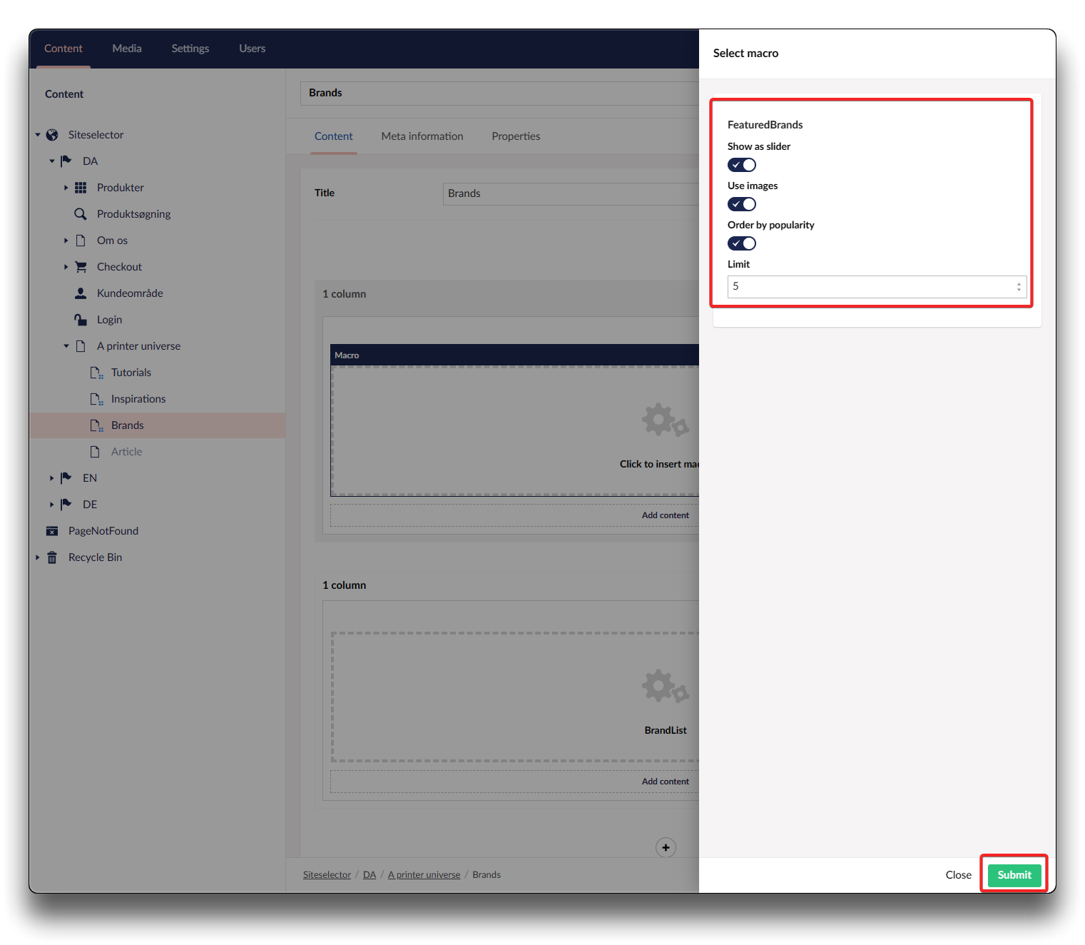 Click "FeaturedBrands", and choose your settings and click "Submit"
