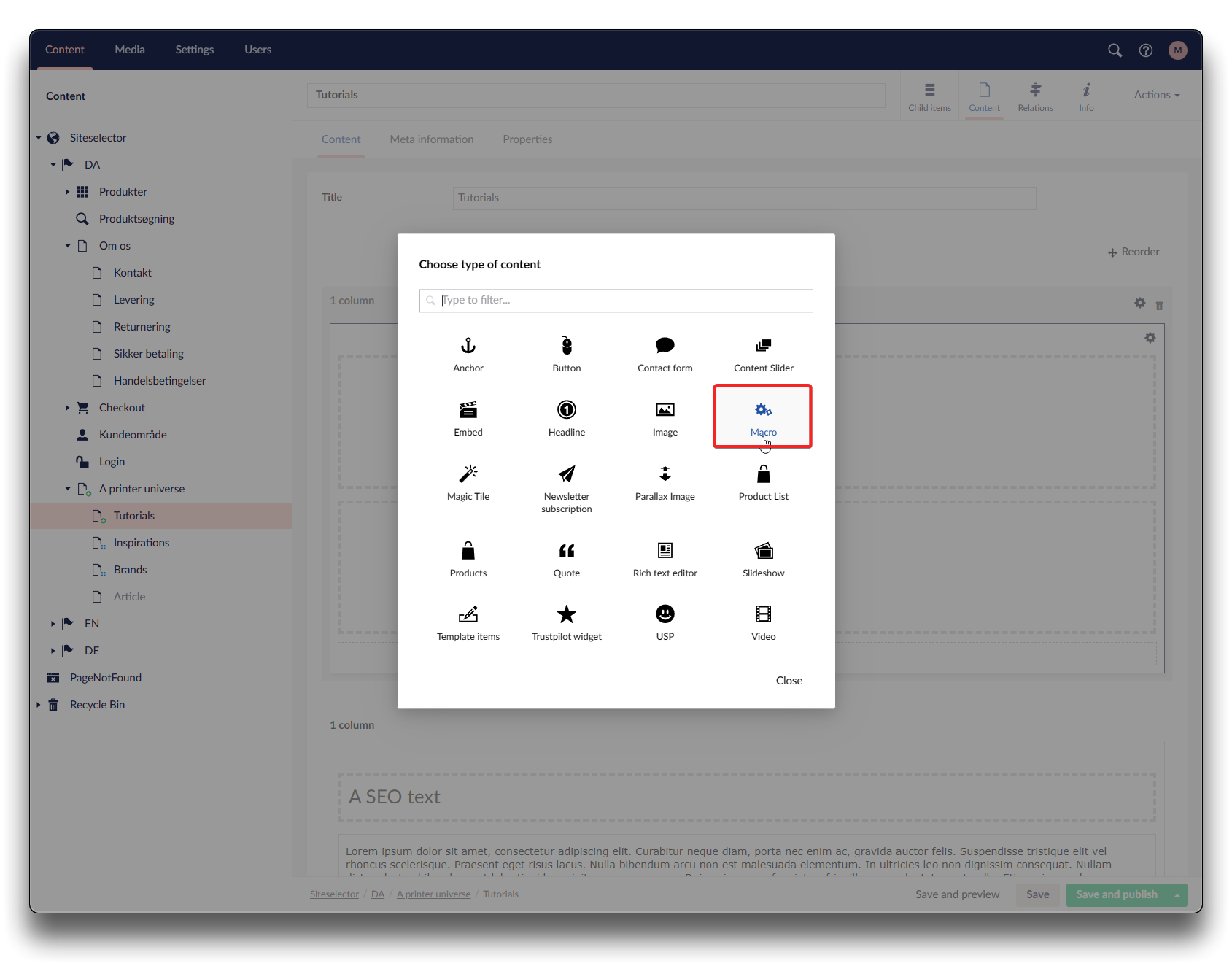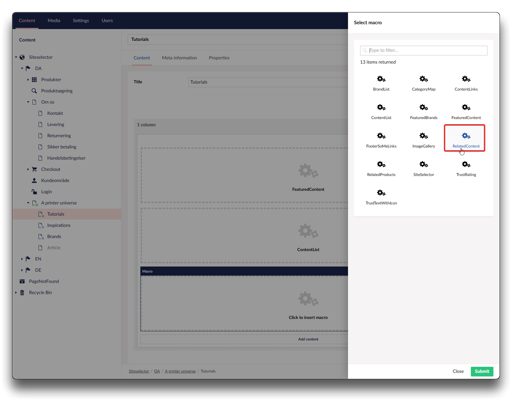 Adding Macro RelatedContent - step 3