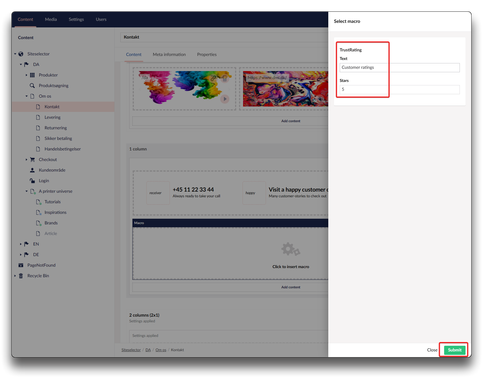 Click "TrustRating". Insert appropriate text and number of stars to list.