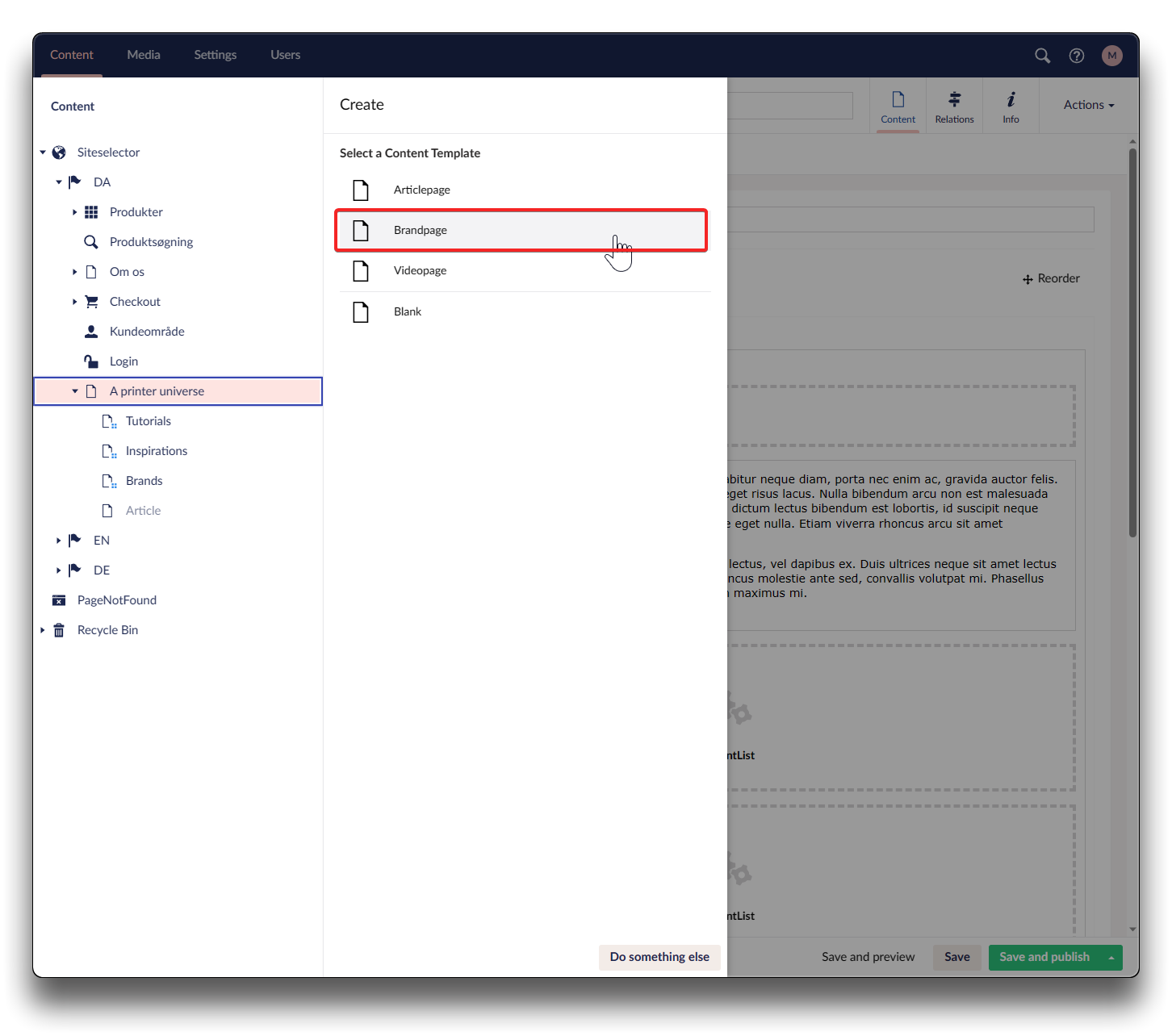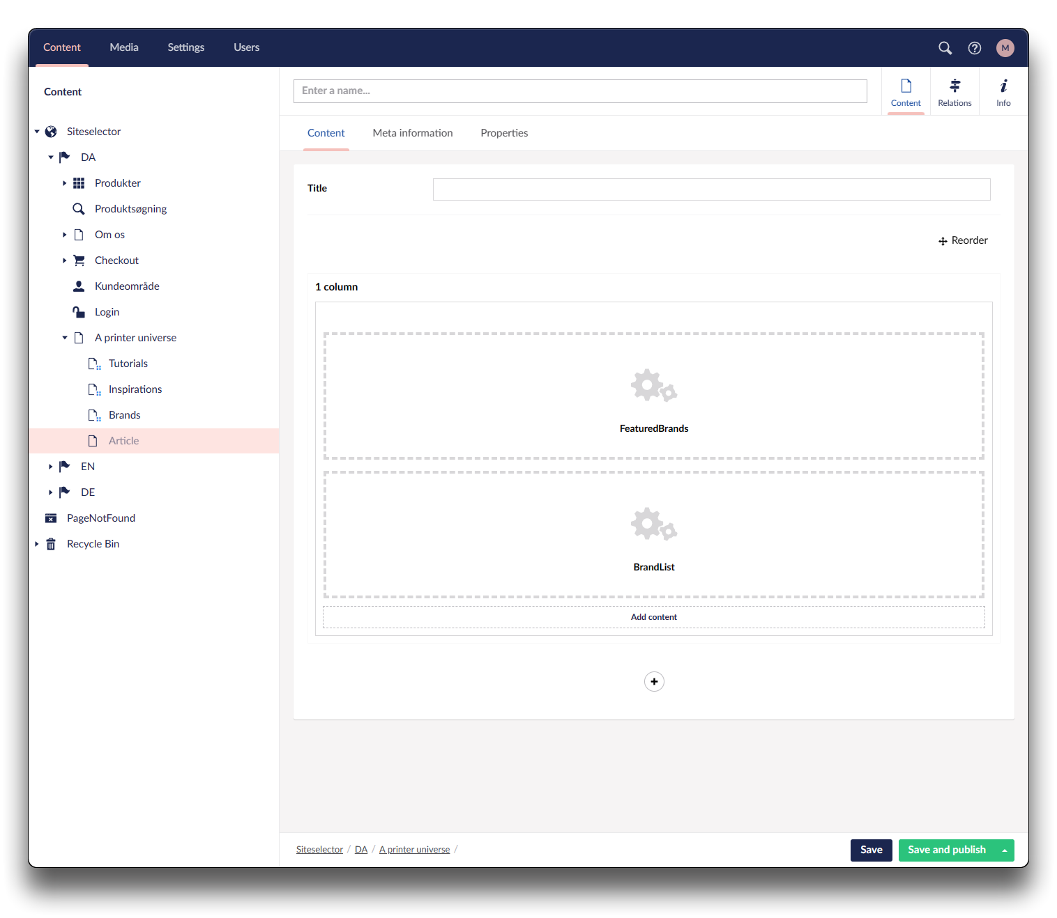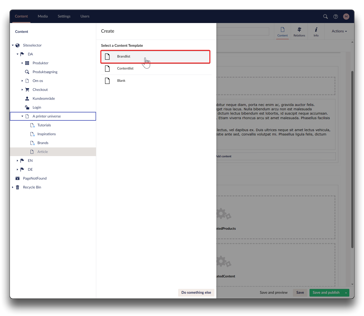 The Brandlist template for Landingpage (Collection) contains two elements, each explained in the below pages: