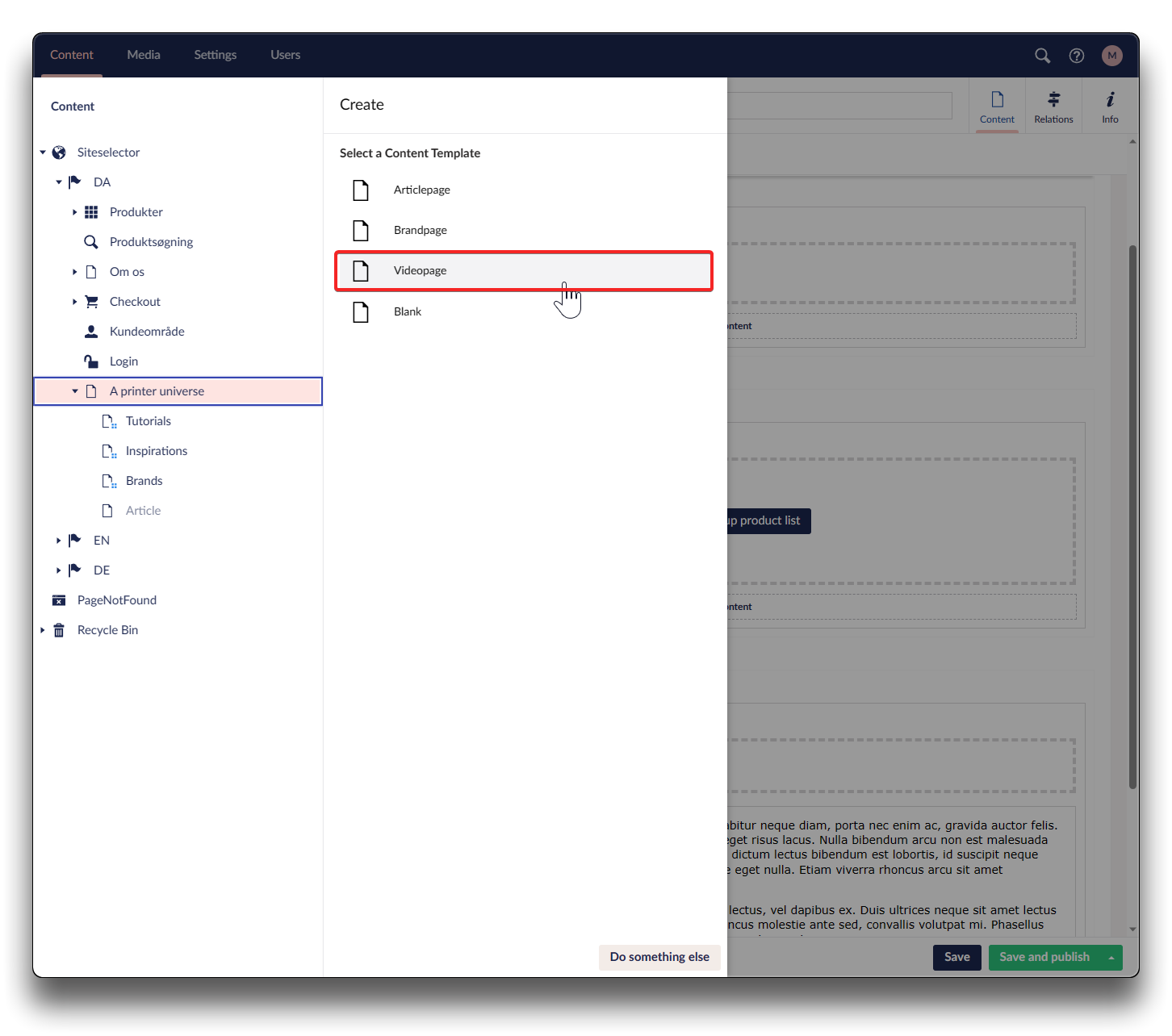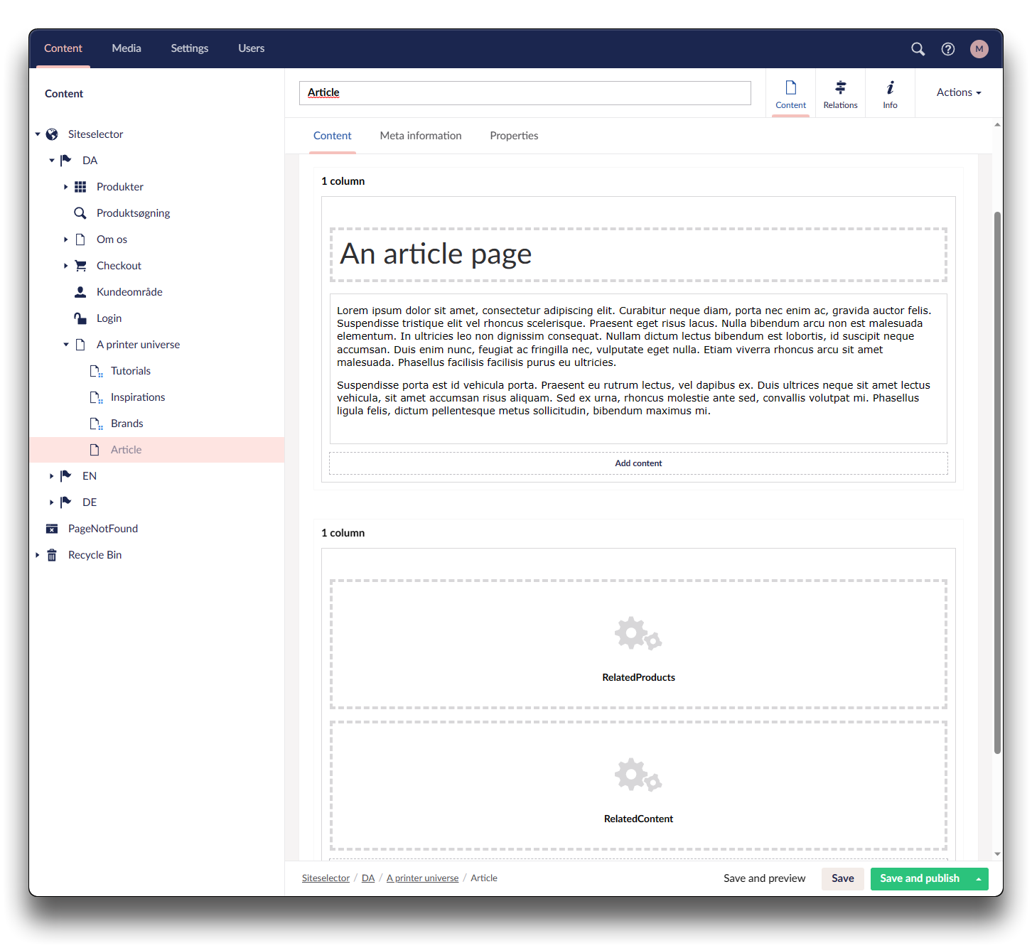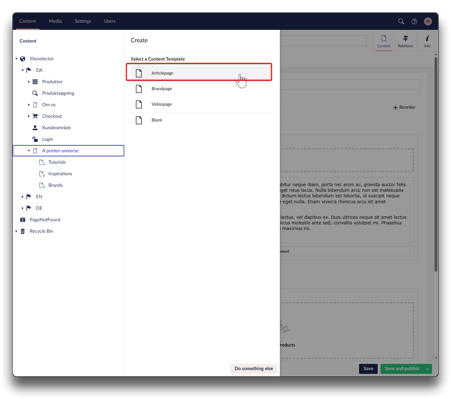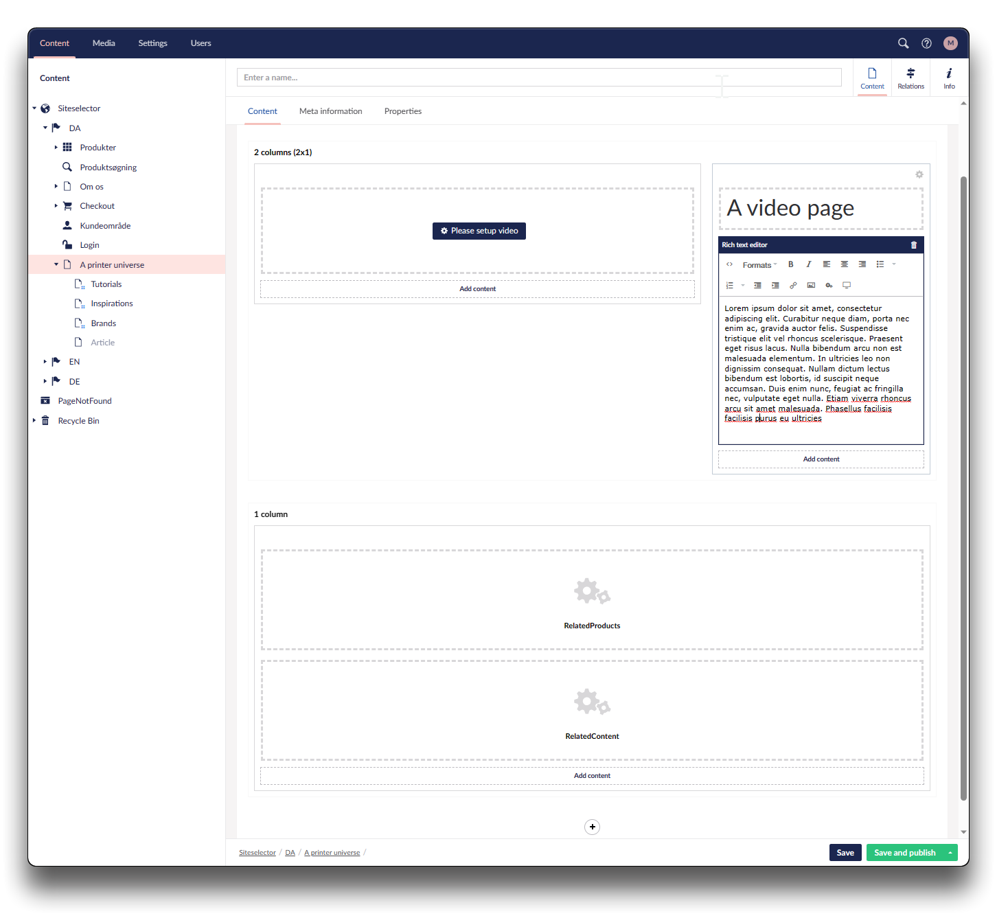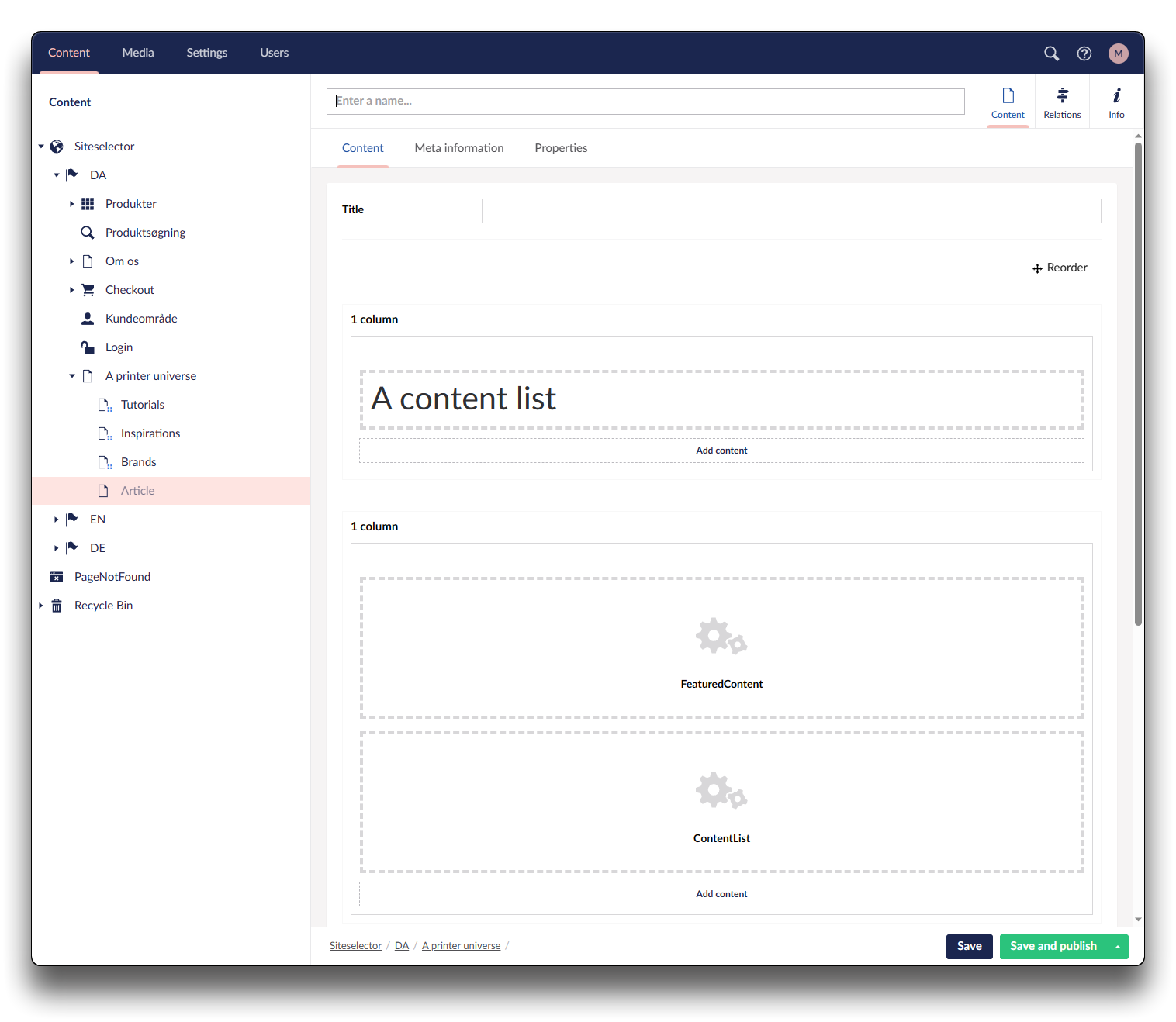 The Contentlist template for Landingpage (Collection) contains three elements, each explained in the below pages: