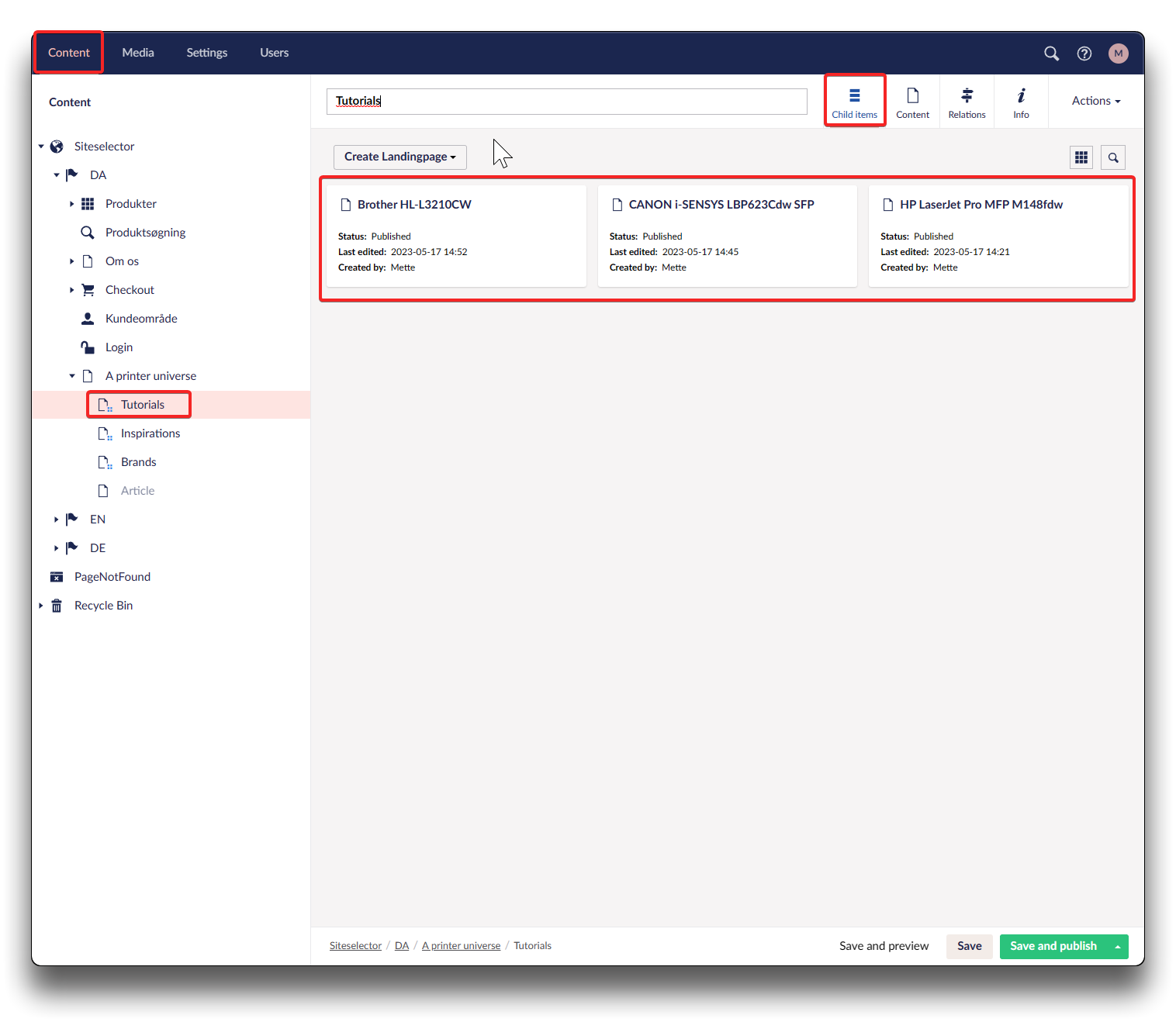 This is how Child items will appear on a Landingpage (Collection). Click "Create Landingpage" to create Child items - no different from creating a regular landingpage
