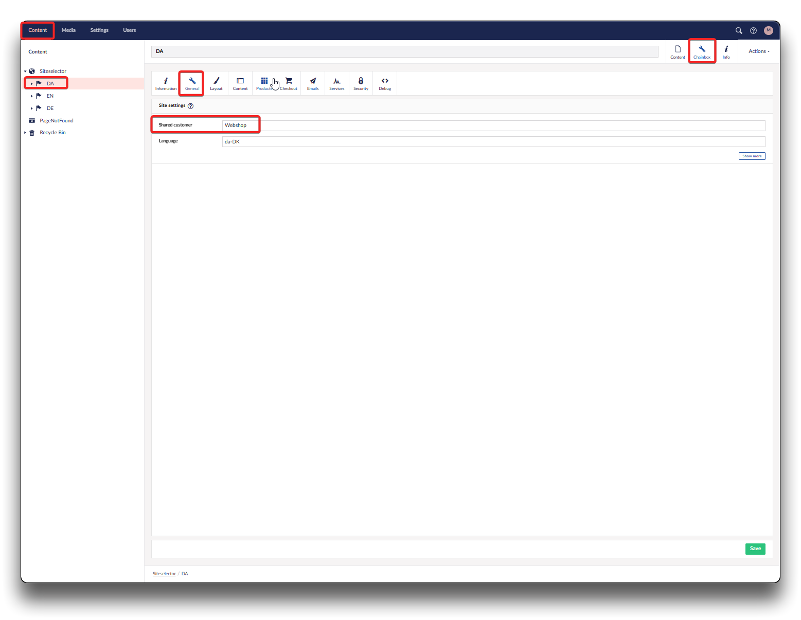 Modifying or deleting the customer ID associated with the shared customer in your ERP-system can result in the webshop malfunctioning!