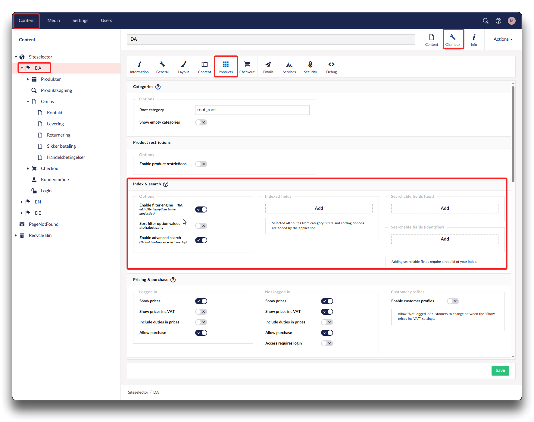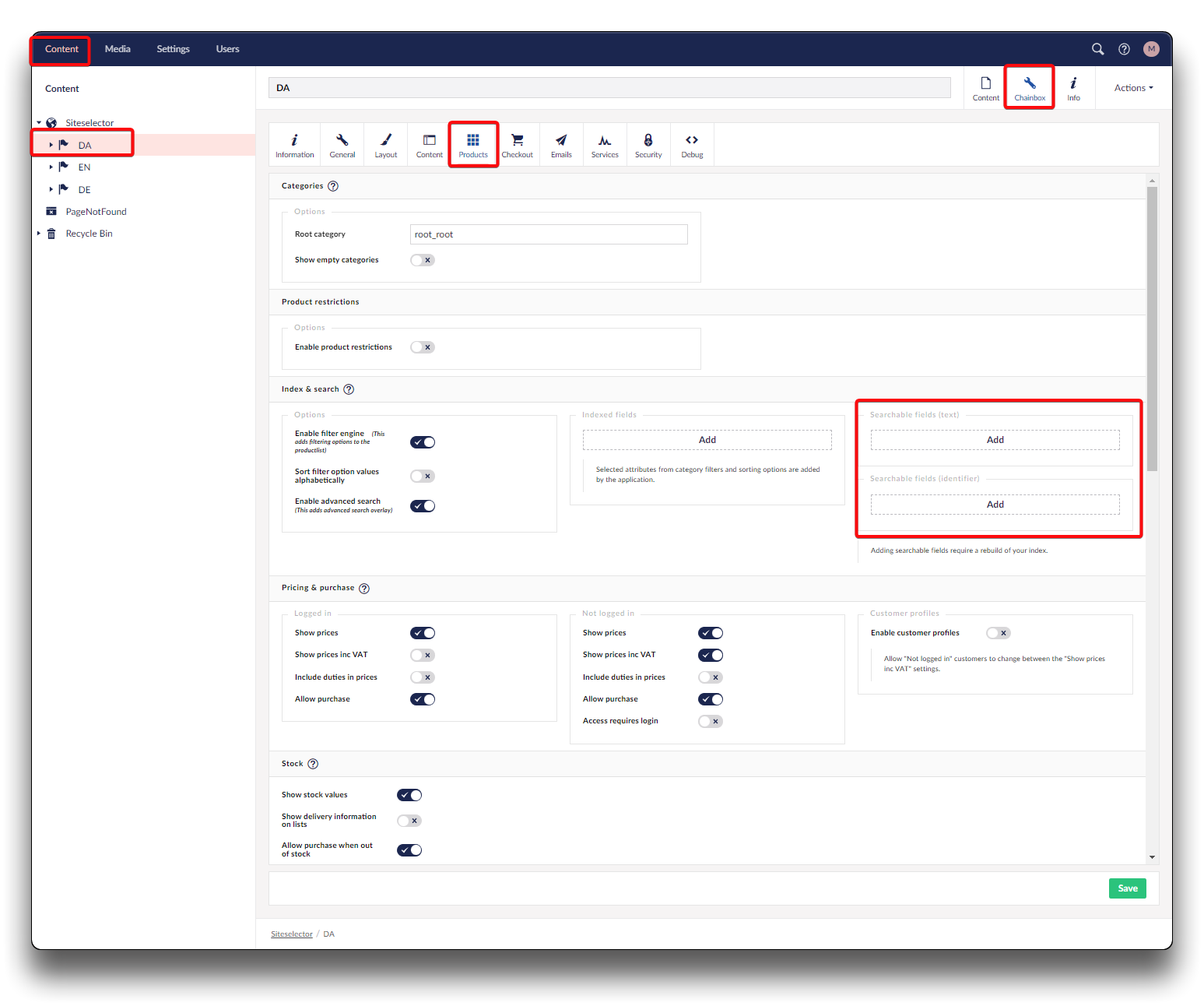 Enabling searchable fields will require rebuilding your website's index. This process can be initiated from the webshop frontend. For detailed instructions on how to perform this task, please refer to the link provided below.