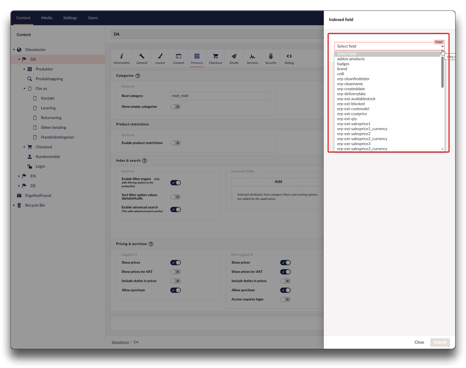Please note, following fields are automatically added as Indexed fields: Selected attributes from category filters, sorting options and popularity.