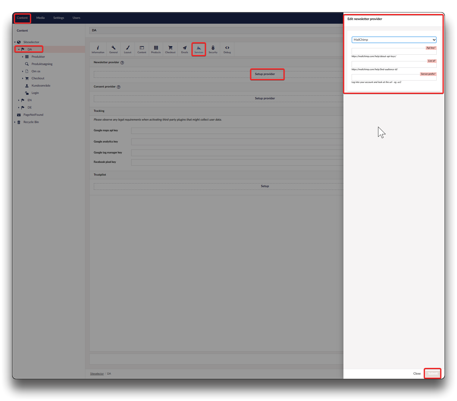 Newsletter provider setup
