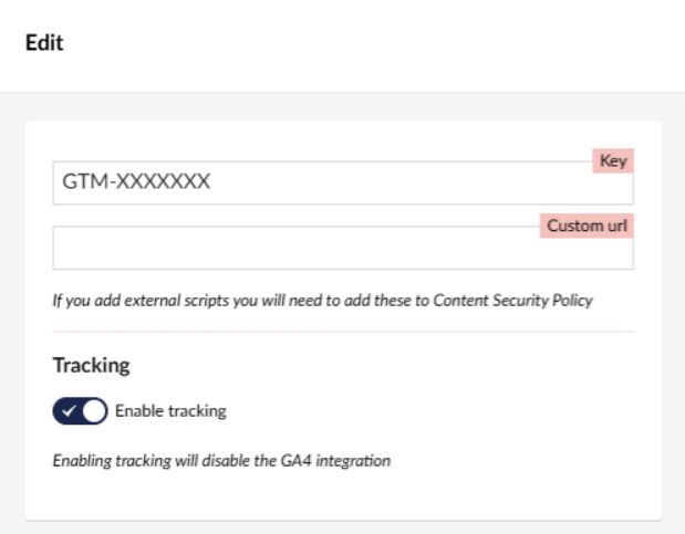 - Under 'Tracking' click 'Edit' next to "Google Tag Manager".