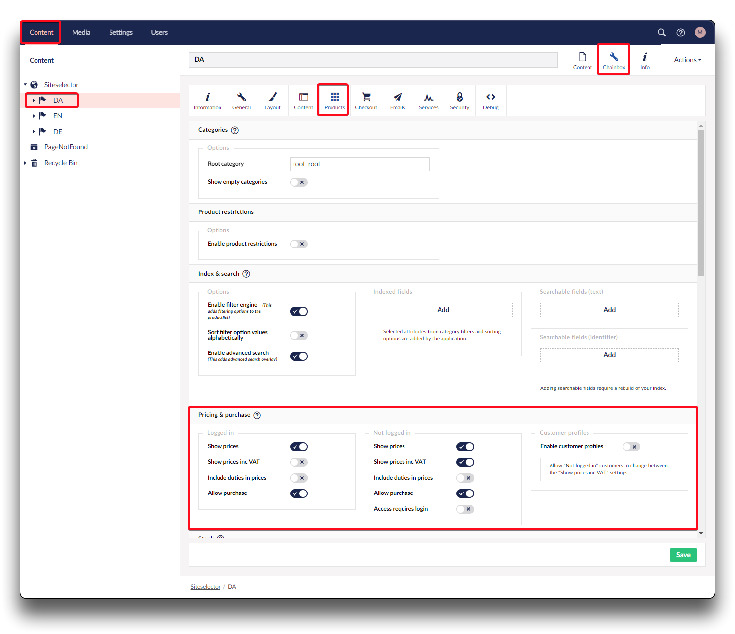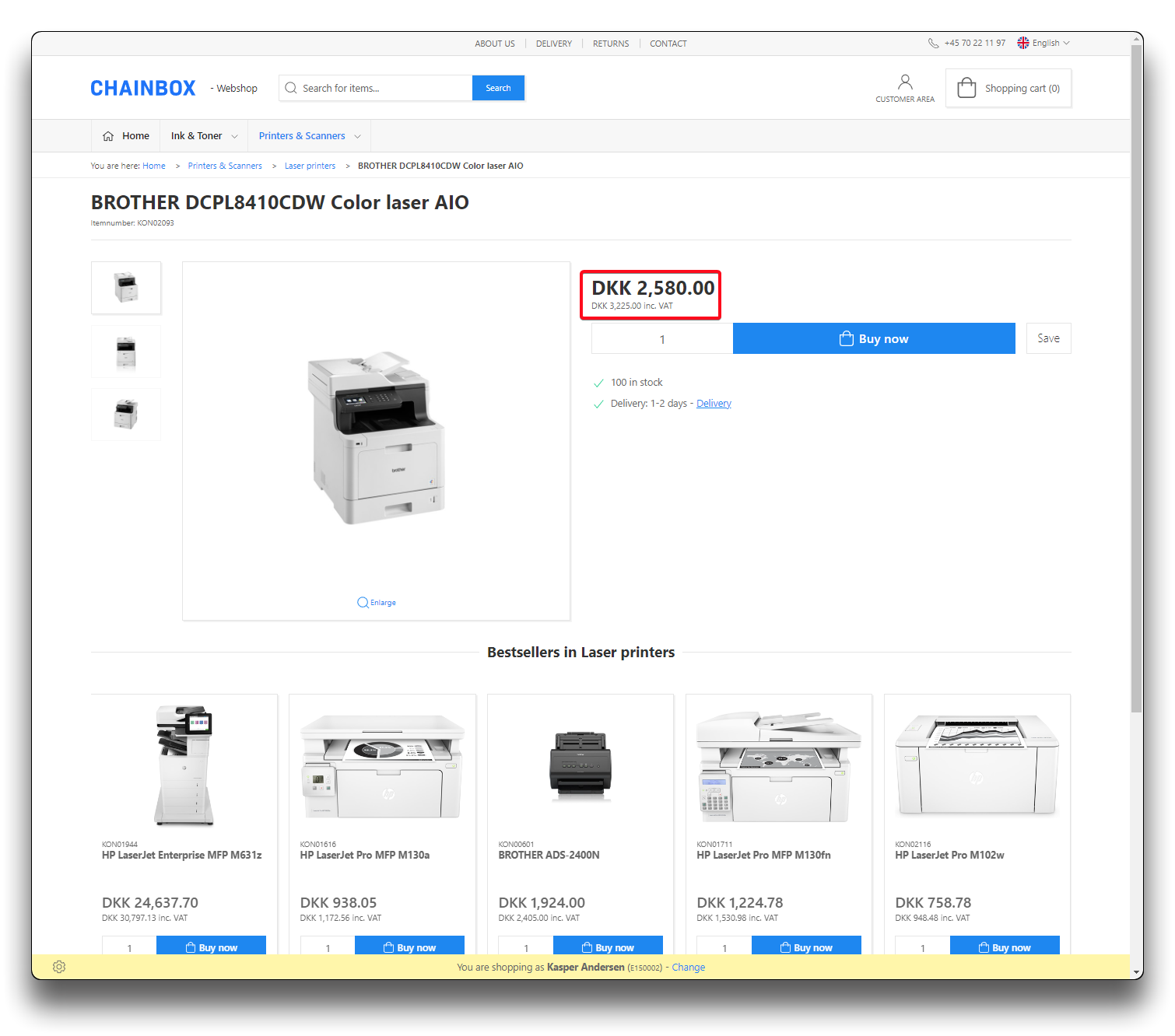 The pricing of products in the webshop is derived from the ERP-system, taking into account multiple factors such as the customer type (generic or specific), the customer's discount structure, currency and the product's pricing information.