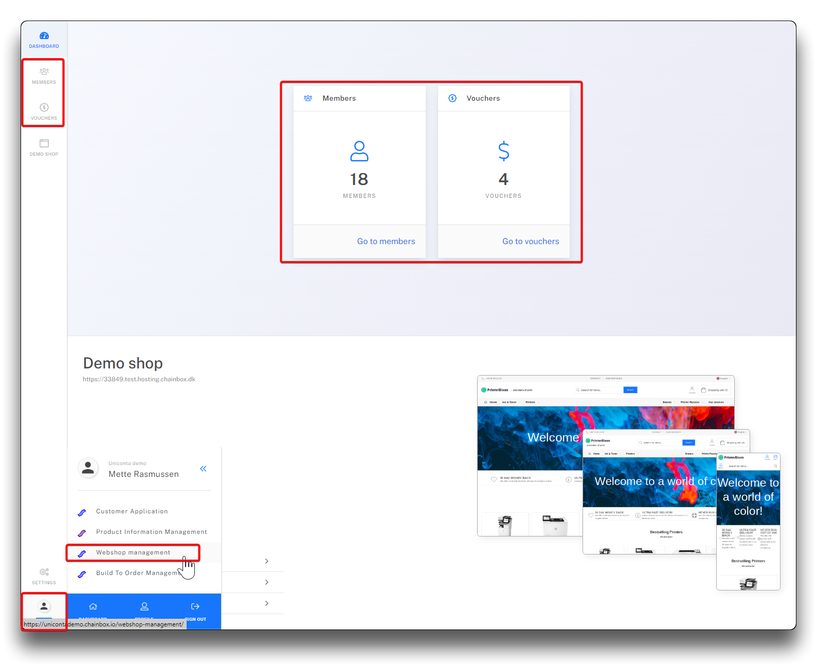 Logins & voucher When maintaining logins and vouchers in webshop management, the changes takes immediate effect within few seconds in the webshop. Area of maintenance of Members and Vouchers in Webshop management Previous PIM data Next Product information management